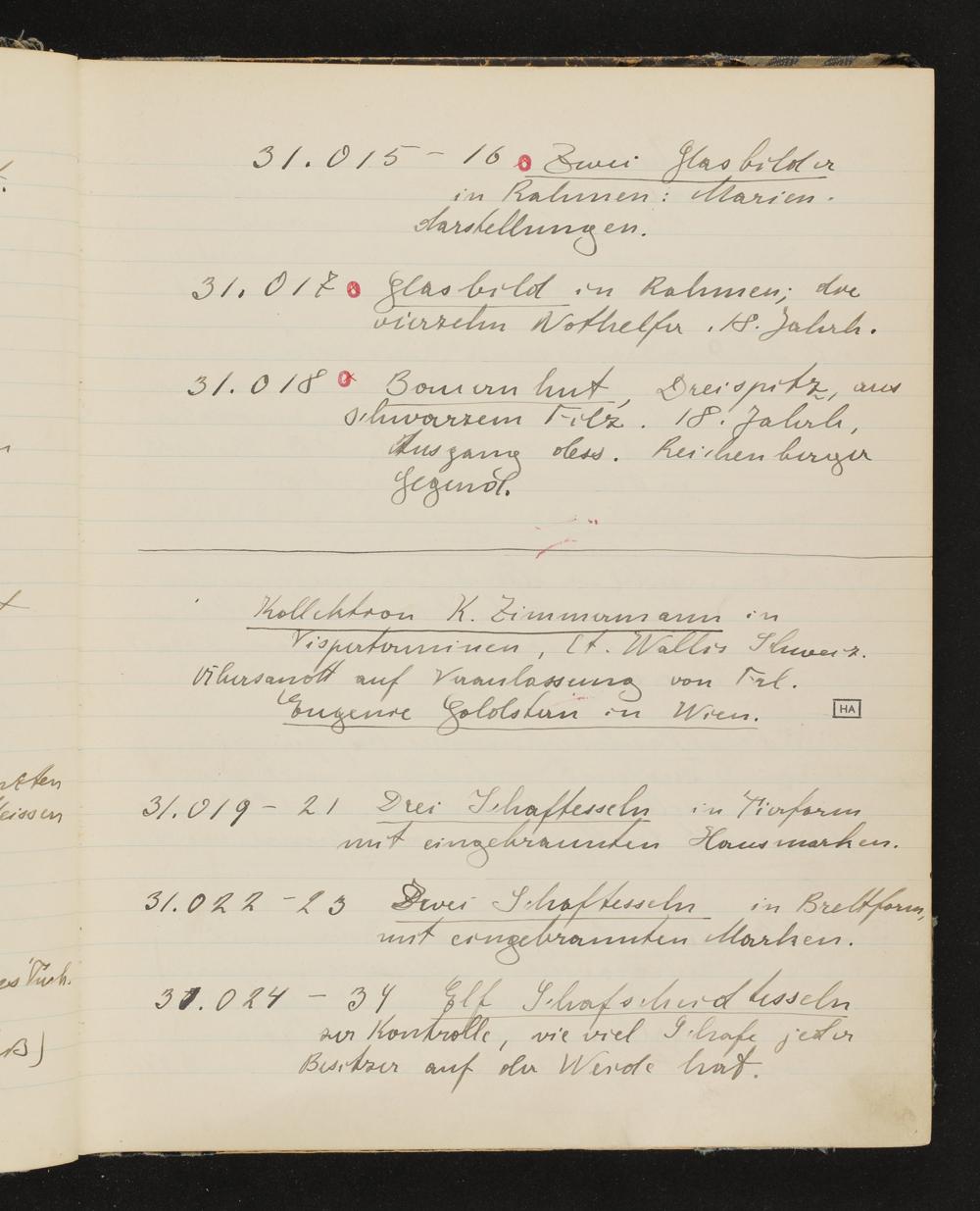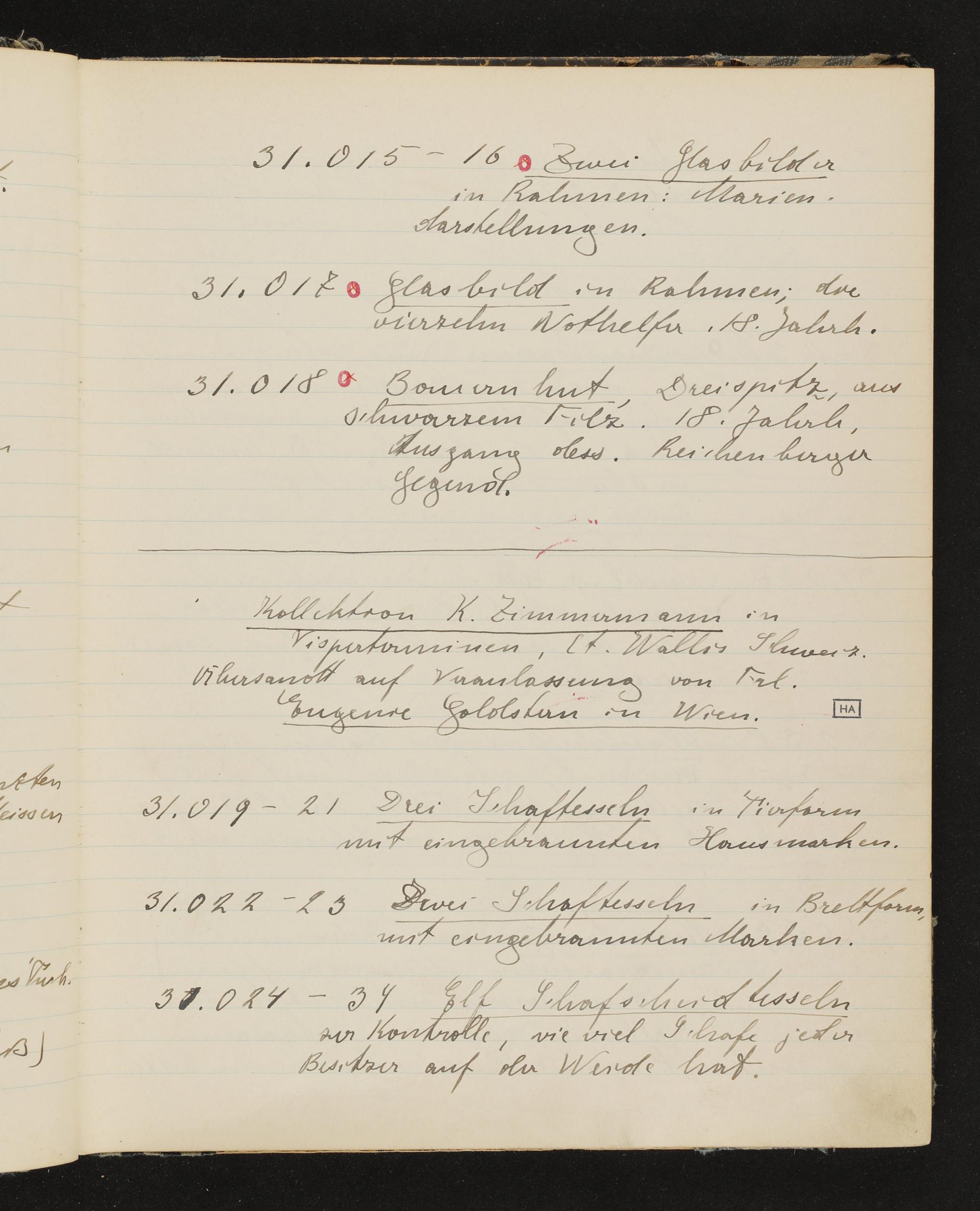 Inventarbuch Objektsammlung Erste Reihe, Band 9. Inventarnummern ÖMV 30.019-32.399
