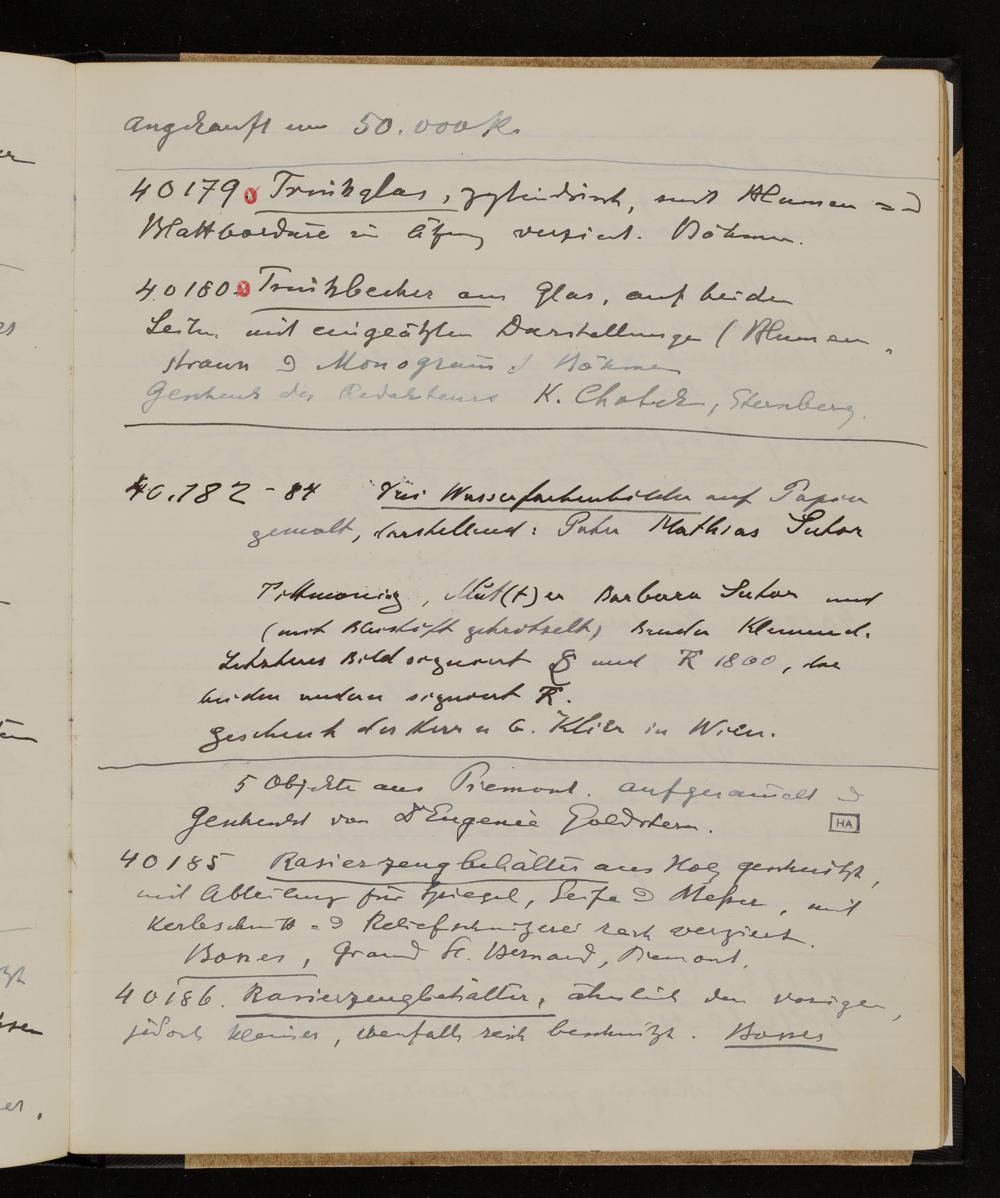 Inventarbuch Objektsammlung Erste Reihe, Band 12. Inventarnummern ÖMV 36.536-40.747