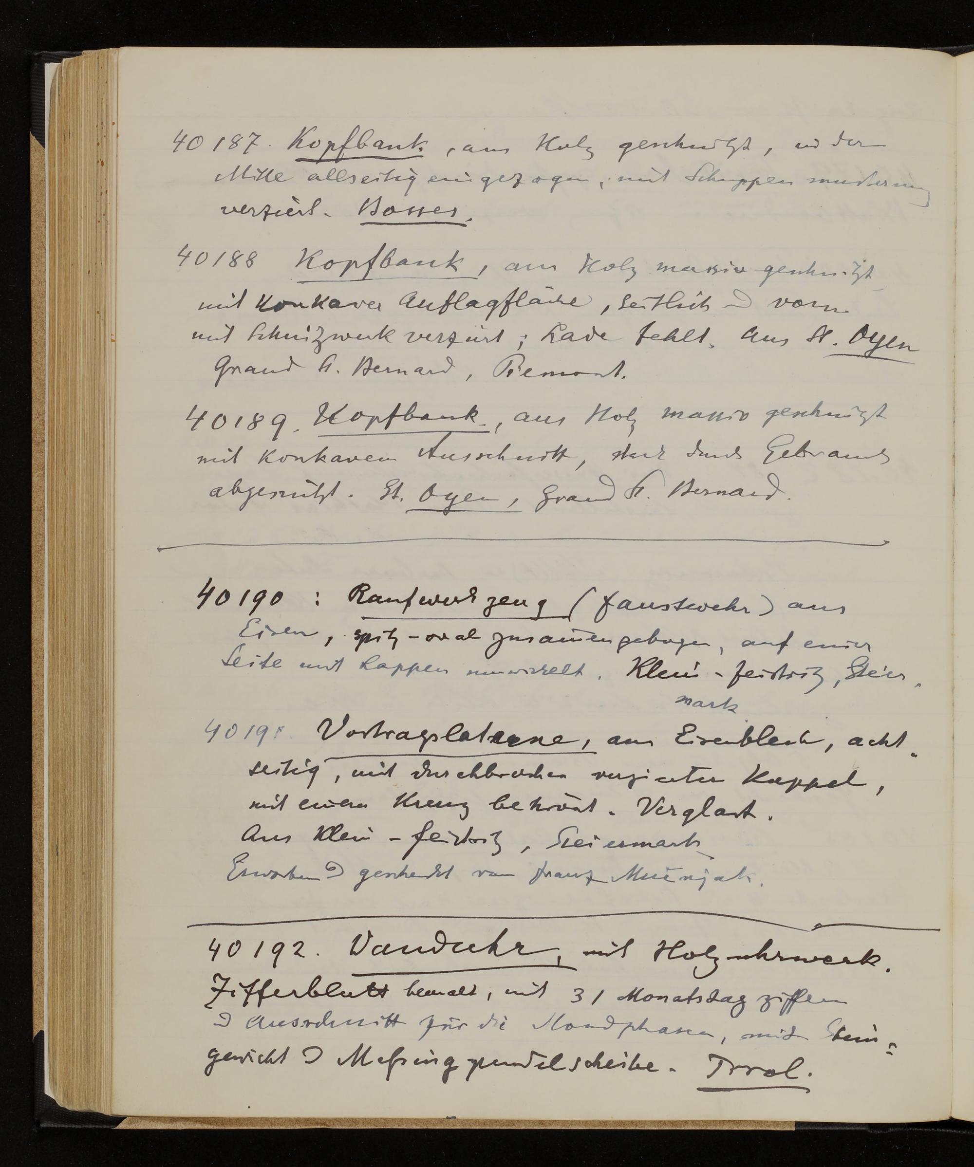 Inventarbuch Objektsammlung Erste Reihe, Band 12. Inventarnummern ÖMV 36.536-40.747