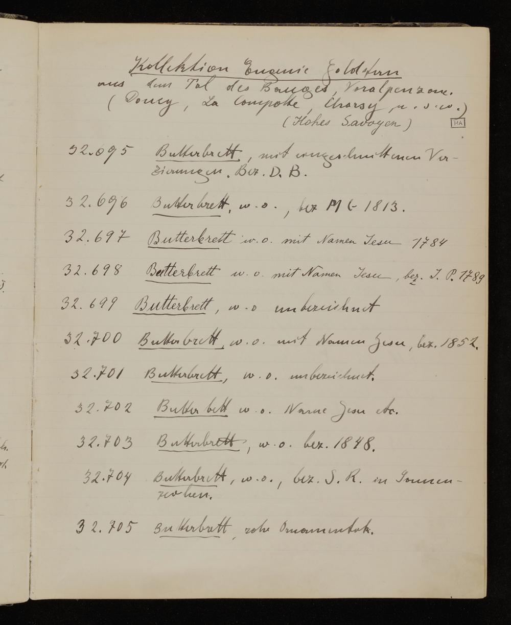 Inventarbuch Objektsammlung Erste Reihe, Band 10. Inventarnummern ÖMV 32.400-34.261