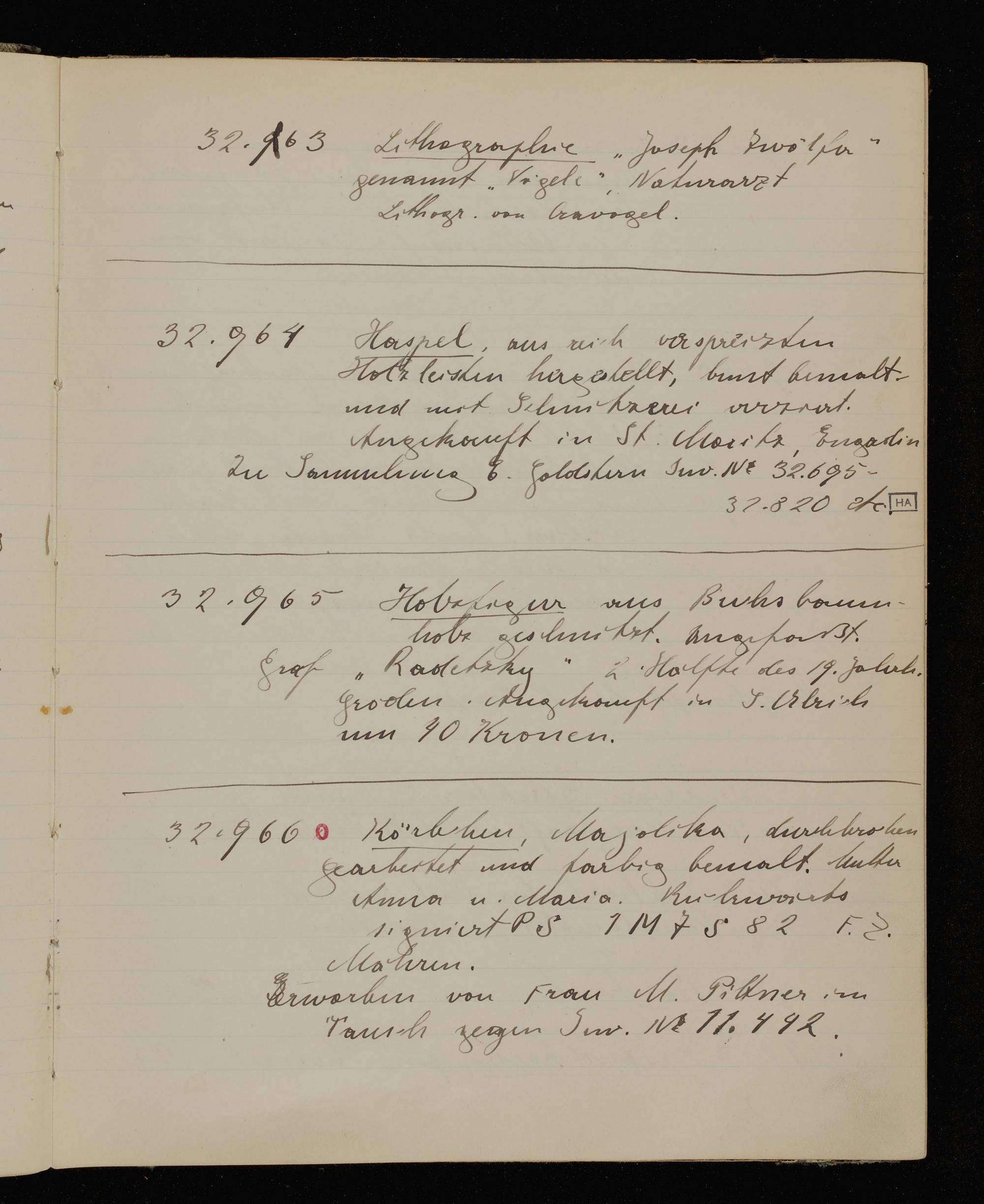 Inventarbuch Objektsammlung Erste Reihe, Band 10. Inventarnummern ÖMV 32.400-34.261