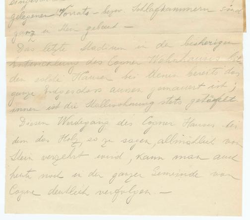 inner ist die Stallwohnung stets getärfeltDiesen Verdegang des Cogner Hauses beidem das Holz, so zu sagen, allmählich vonStein verzehrt wird, kann man auchheute noch in der ganzen Gemeinde vonverfolgen.-
