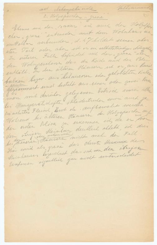 ^Valtournande(2)ad Nebengebäude2. Holzspeicher„grüneEbenso wie der"rakar" ist auch der Holzspeschen"grené" entweder mit dem Wohnhaus un-mittelbar verhältet, d. hte bildet seinen ober-ster Teil oder aber ist er ein selbstständiges NebengekommenIn ersteren Falle befindet sich der„grene schon"dem Wohngeschossen des die Küche unterhältigenenthält. In den älteren Häusern ist er aus Rung