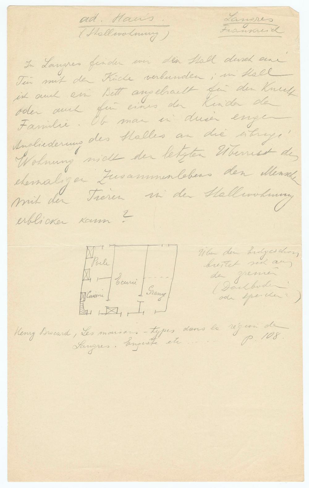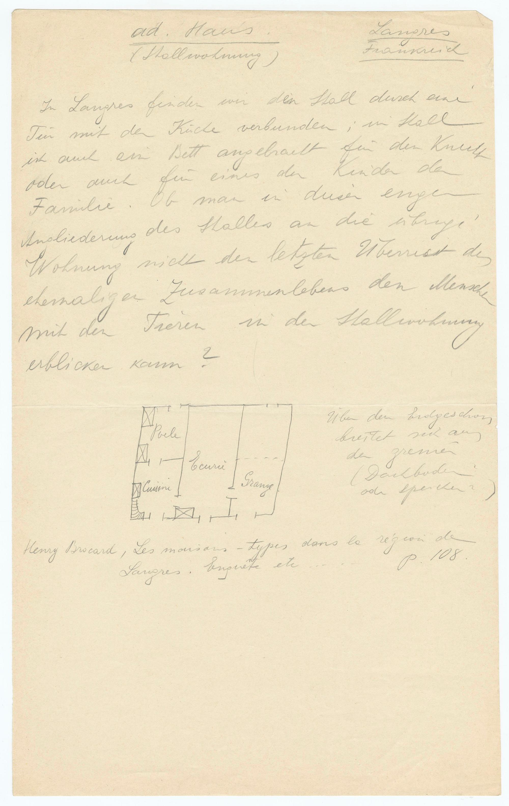 PoeleCuisineEcurieGrangeÜber dem Erdgeschossbreitet sich anden grenier(Dachbodenoder Speicher)Henry Brocard, Les maisons-types dans la région deLangres. Enquête etc..…p. 108.