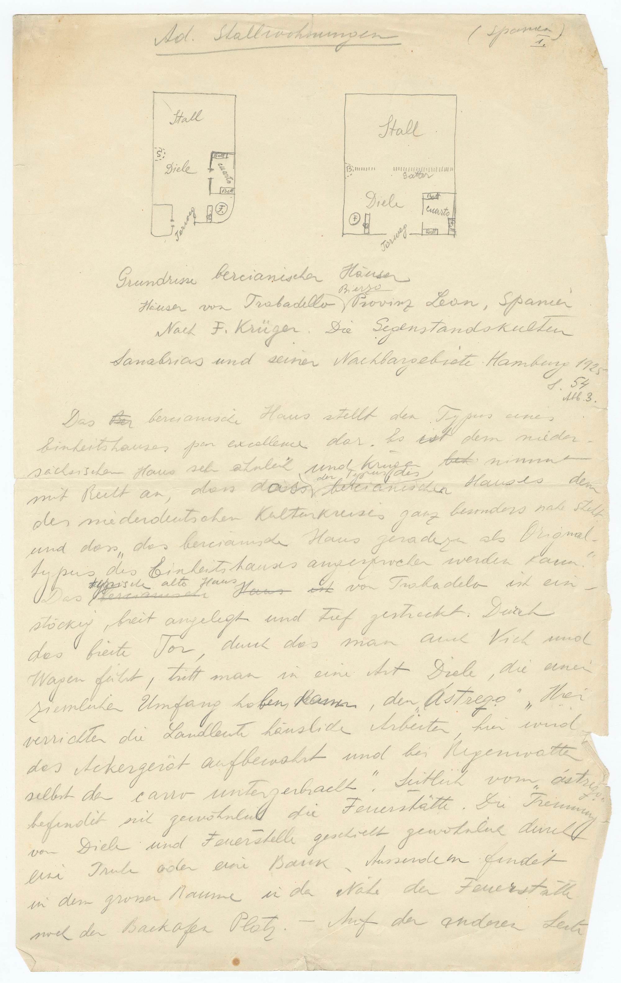 Grundrisse bercianischer HäuserBierzoHäuser von Trabadello Provinz Leon, SpanierNoch F. Krüger. Die SegenstandskultenSanabrias und seiner Nachbargebiete Hamburg 1928S. 54Abb. 3.
