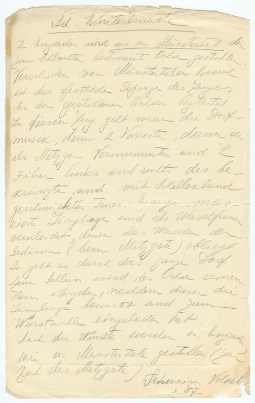 Ad. WinterbrancheIn Engadin wird wie in Münstertah derzum Schlachten bestimmte Ochsen gestohlen.Verschieden vom Münstertaber Brandist das festlide Sepräge des Zeuges"der den gestohlenen Ochsen begrüstetIn diesem Zuy geht voran die Dorf-musik, ƒ 1:10:16:8:1