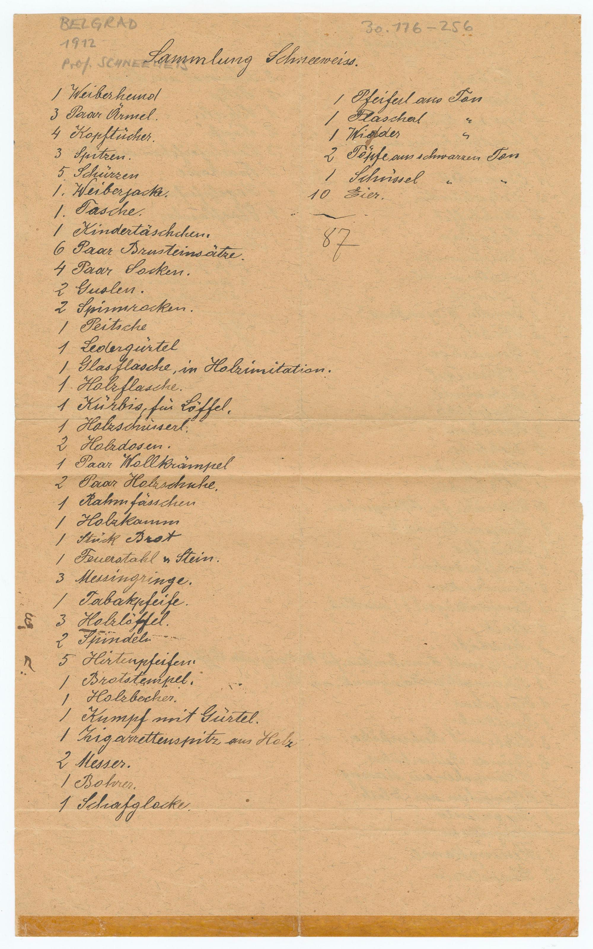 1 Weiberhema Glossar ::: zum Glossareintrag Weiberhema3 Paar Ärmel.4 Kopftücher.3 Spitzen.5 Schürzen1. Weiberjacke Glossar ::: zum Glossareintrag Weiberjacke.1. Tasche.1 Kindertäschchen.6 Paar Brusteinsätze.4 Paar Socken.Votre très bien de cette2 Spinnrocken.1 PeitscheEdergürtel1 Glasflasche, in Holrimitation.1 Holzflasche.1 Kurbis, für Löffel.1 Holzschmiserl.2 Holzdosen.1 Paar Ellkrampel2. Jahre lägere1 Toutefois dans la1 Holzkamm1 Stück Brot1 Feuerstahl& Stein.9 Messingringe.1 Tabakpfeife.3 Holzlöffel.2 Spindeln5 Hirtenpfeifen1 Brötter Epel.1 Holzbecher.1 Kumpf mit Gürtel.1 Ingarrettenspitz aus Holz2 Messer.1 Bohrer.1 Schafglocke.
