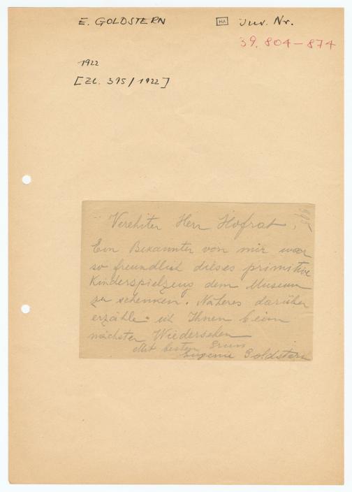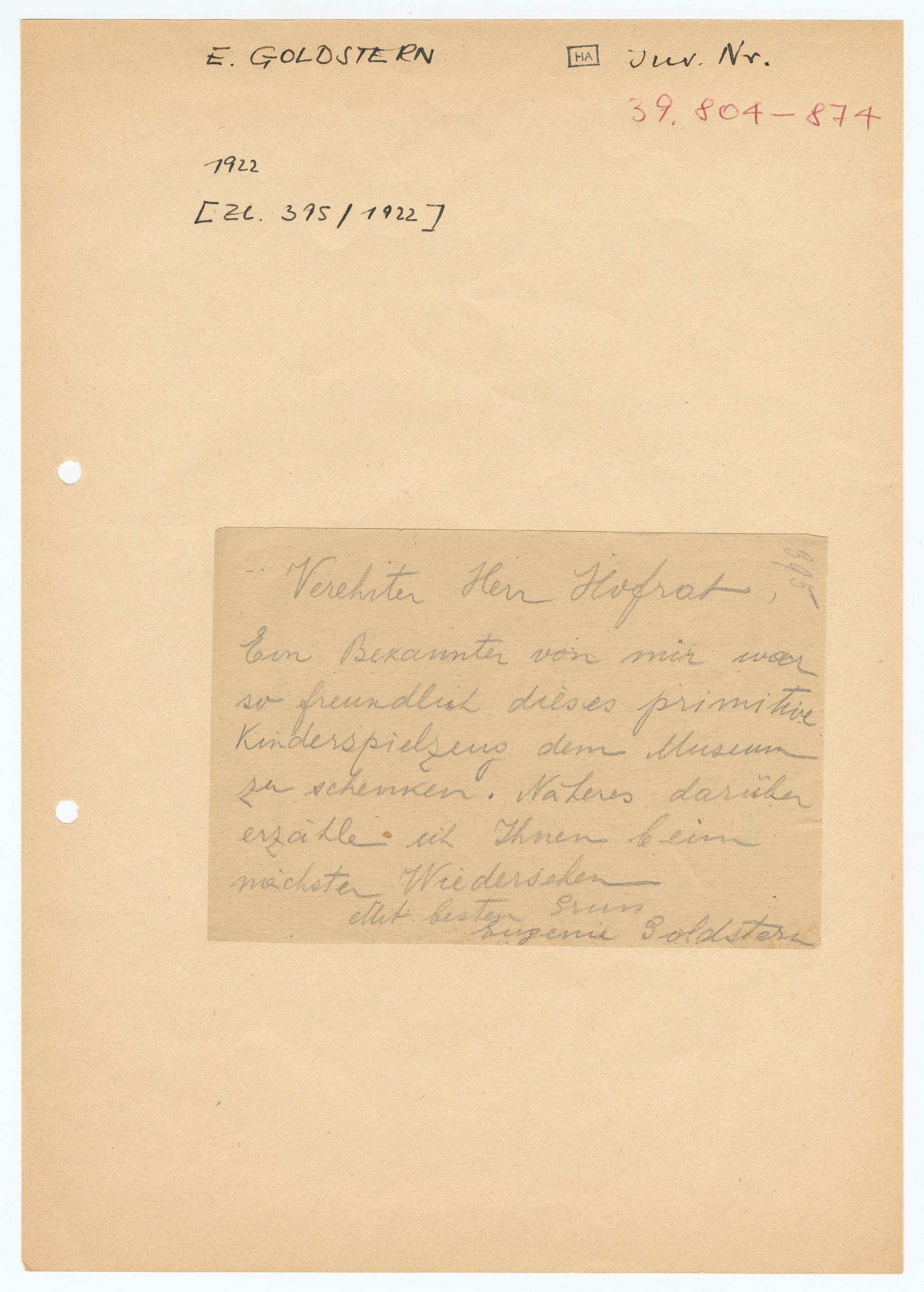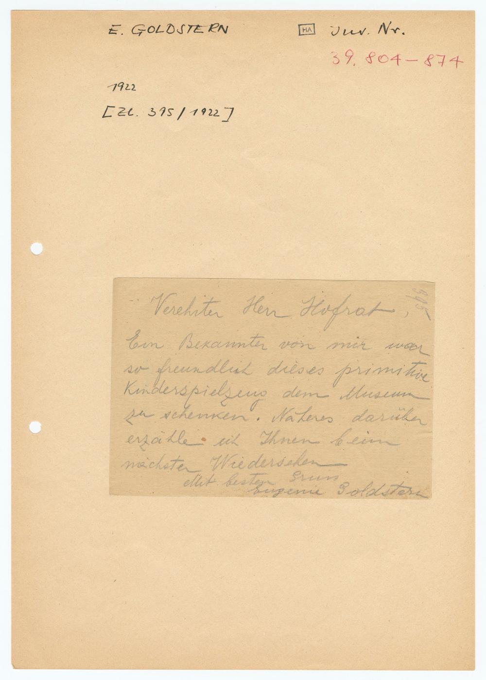 E. GOLDSTERN[HA] Inv. Nr.39.804-8741922[Zl. 395/1922]