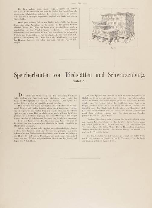 Schwarzenburg und Umgegend, wozu Riedstätten gehört, zeigt dasHaus im Hintergrunde der Tafel 8 zur Linken. Auf später fol-genden Tafeln werden wir spezieller darauf eingehen.
