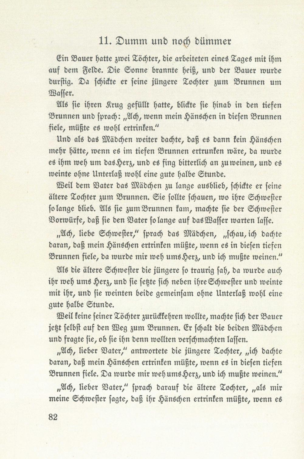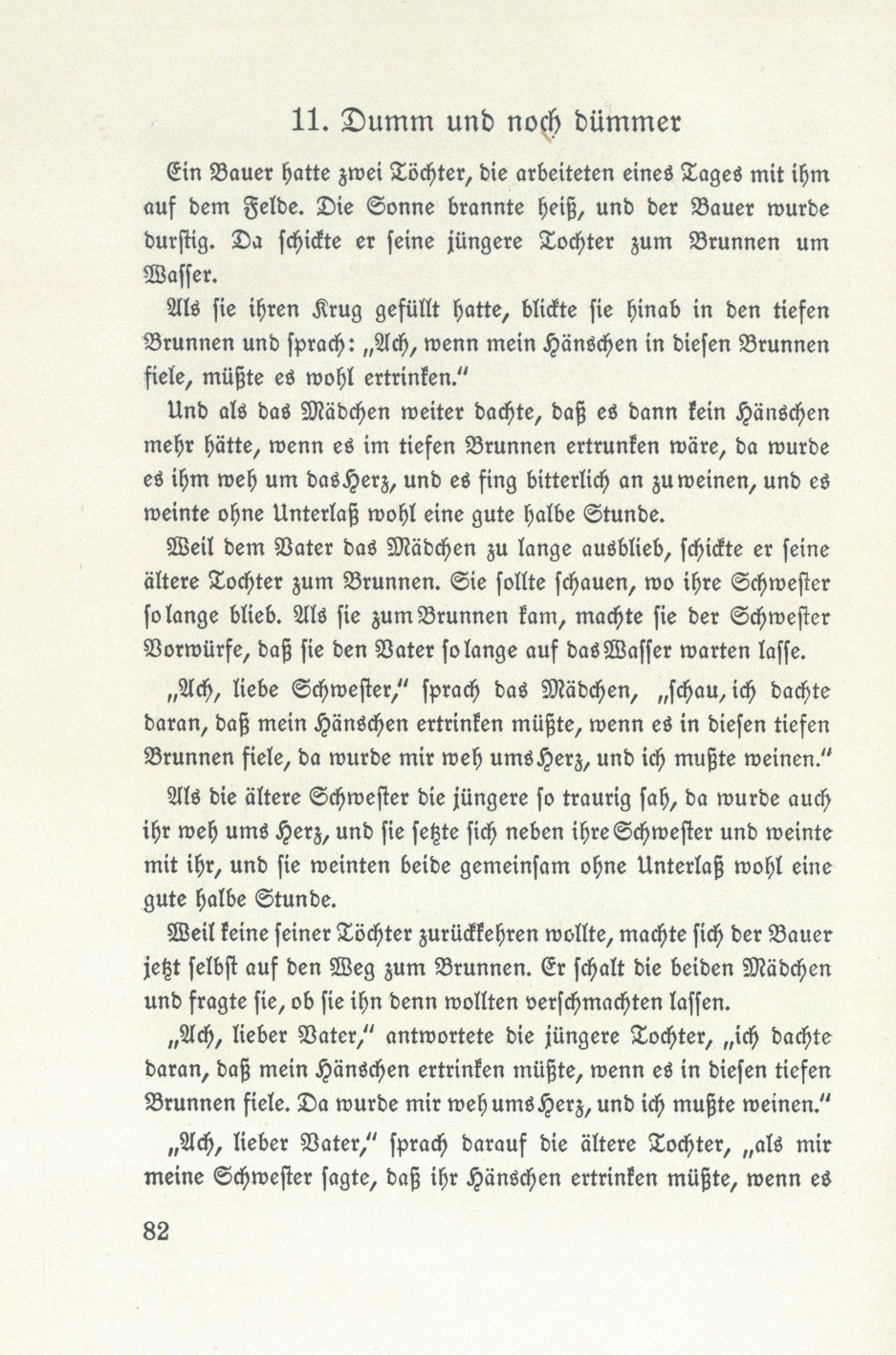 ,, Ach, lieber Vater," antwortete die jüngere Tochter ,,, ich dachtedaran, daß mein Hänschen ertrinken müßte, wenn es in diesen tiefenBrunnen fiele. Da wurde mir weh ums Herz, und ich mußte weinen."