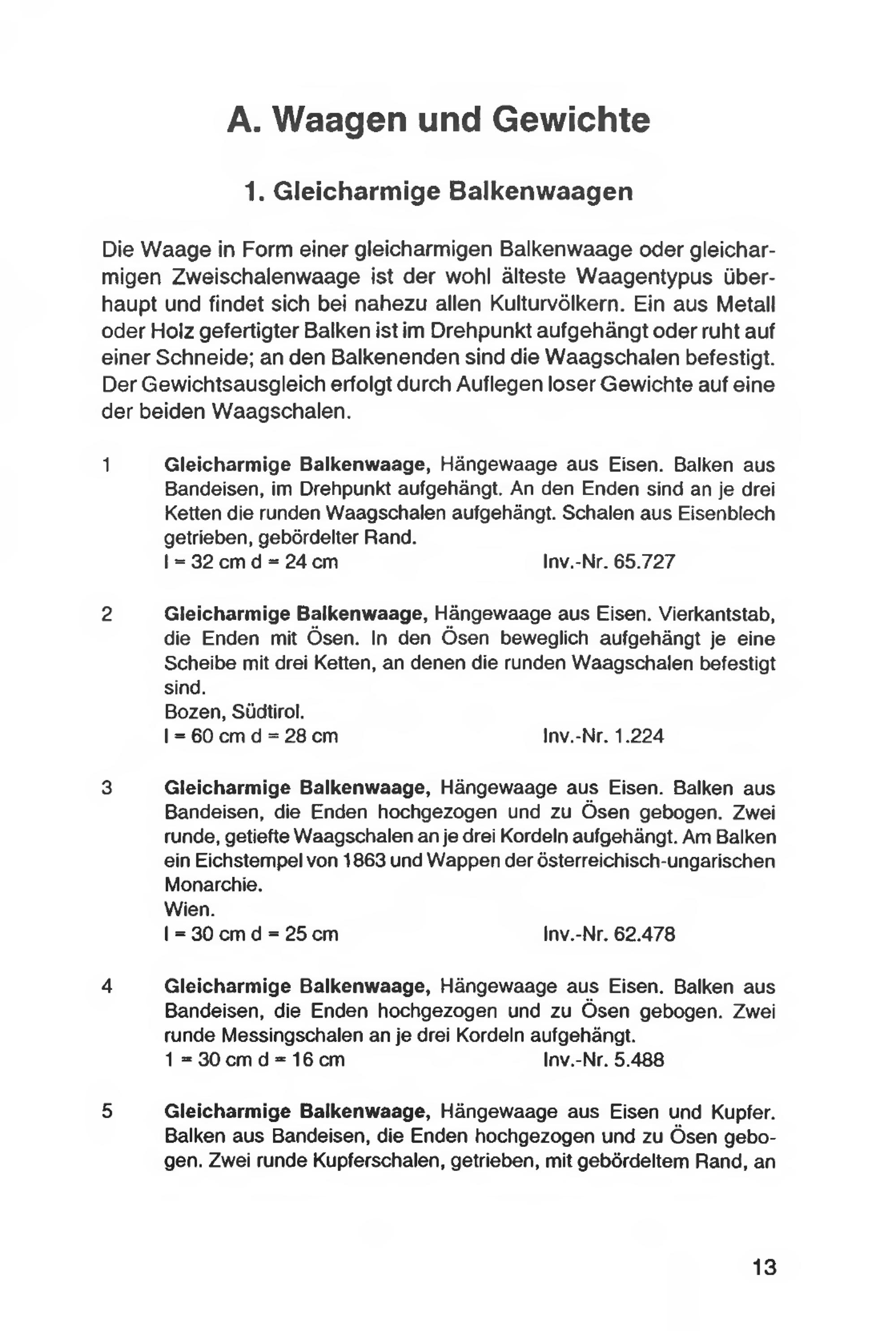 1. Gleicharmige Balkenwaagen