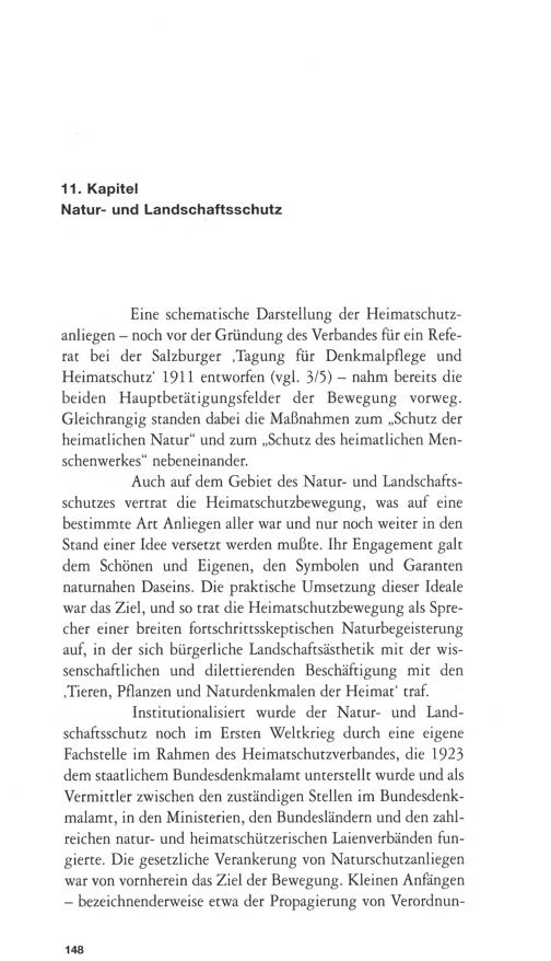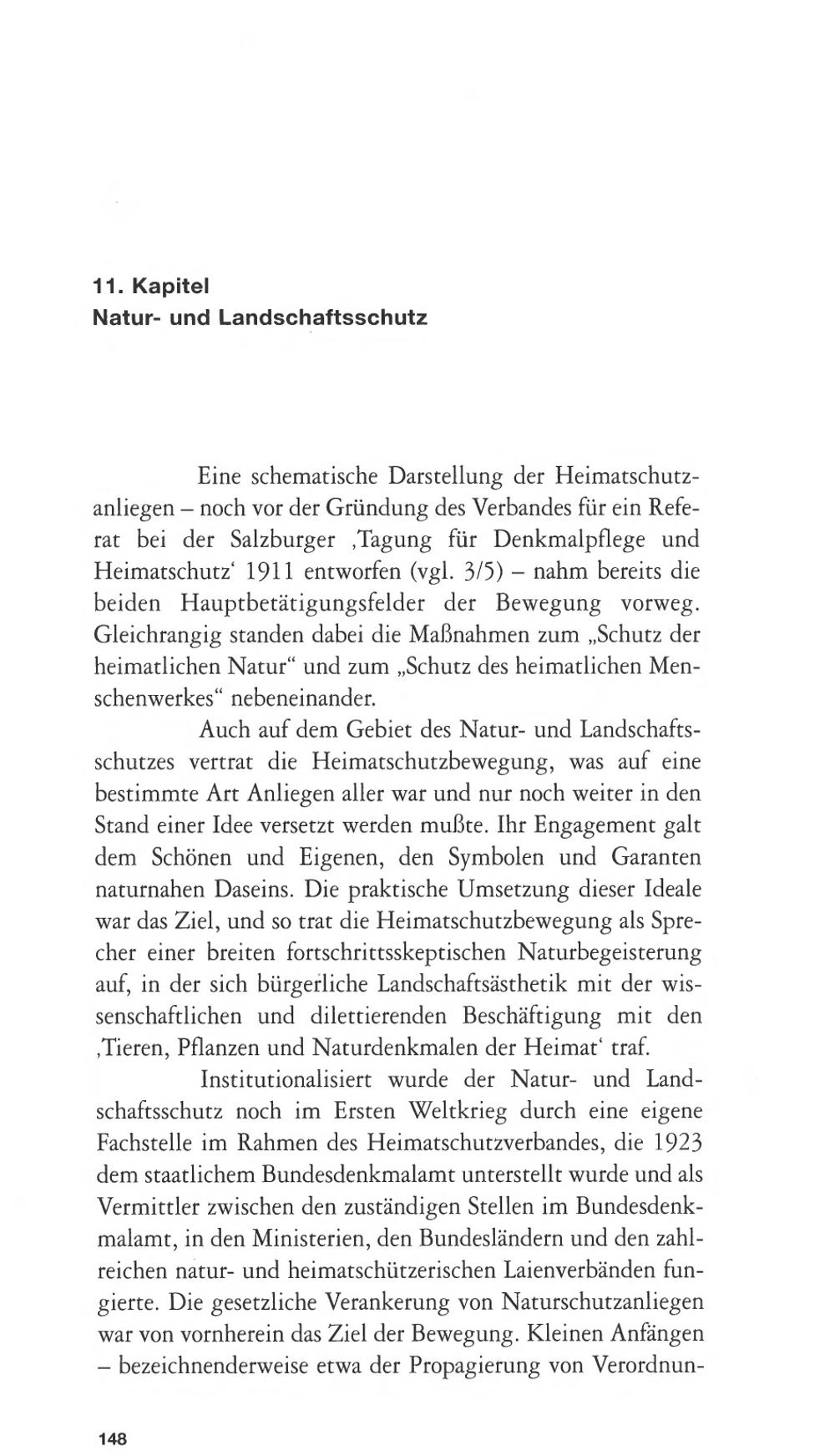 Institutionalisiert wurde der Natur- und Land-schaftsschutz noch im Ersten Weltkrieg durch eine eigeneFachstelle im Rahmen des Heimatschutzverbandes, die 1923dem staatlichem Bundesdenkmalamt unterstellt wurde und alsVermittler zwischen den zuständigen Stellen im Bundesdenk-malamt, in den Ministerien, den Bundesländern und den zahl-reichen natur- und heimatschützerischen Laienverbänden fun-gierte. Die gesetzliche Verankerung von Naturschutzanliegenwar von vornherein das Ziel der Bewegung. Kleinen Anfängen- bezeichnenderweise etwa der Propagierung von Verordnun-