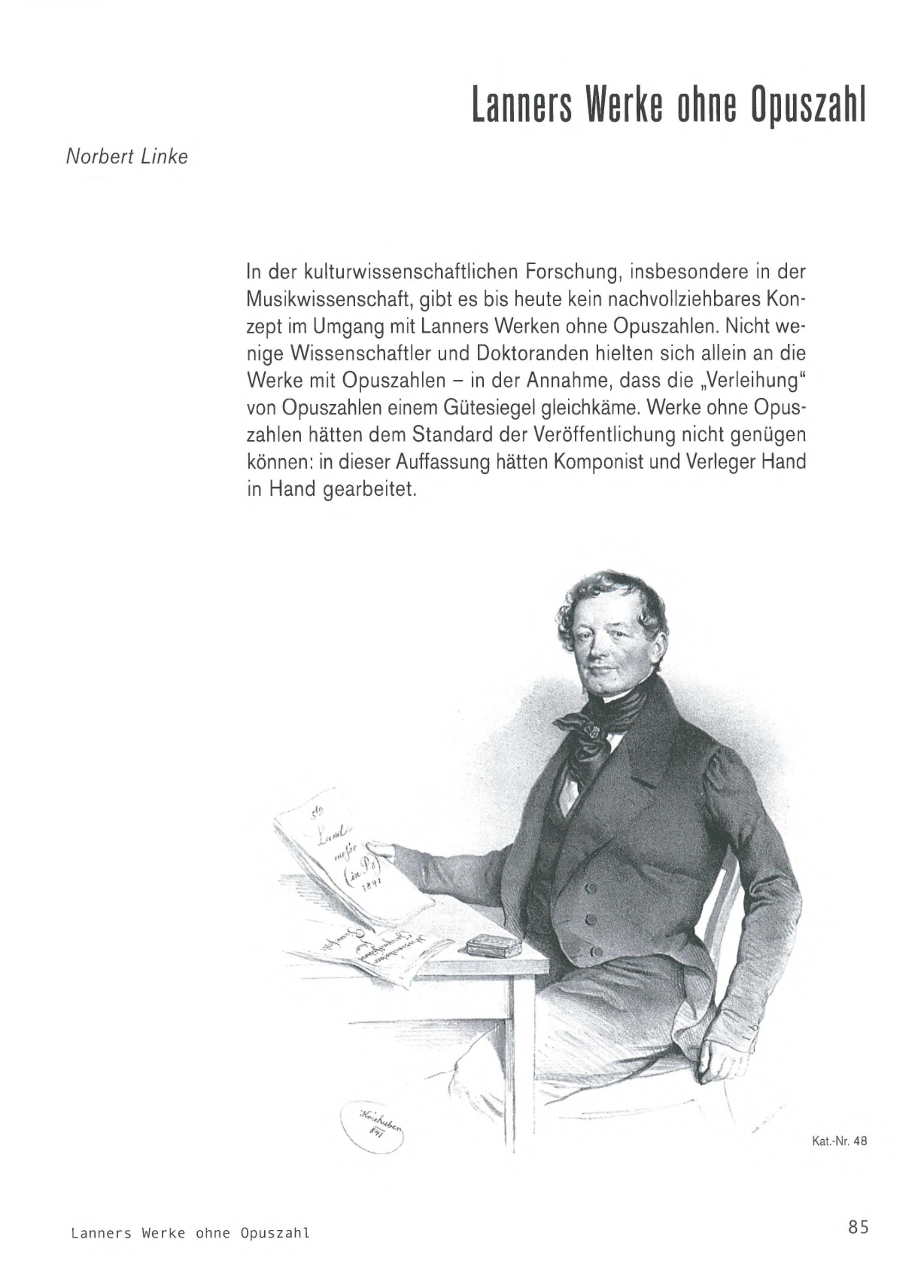 In der kulturwissenschaftlichen Forschung, insbesondere in derMusikwissenschaft, gibt es bis heute kein nachvollziehbares Kon-zept im Umgang mit Lanners Werken ohne Opuszahlen. Nicht we-nige Wissenschaftler und Doktoranden hielten sich allein an dieWerke mit Opuszahlen- in der Annahme, dass die„ Verleihung"von Opuszahlen einem Gütesiegel gleich käme. Werke ohne Opus-zahlen hätten dem Standard der Veröffentlichung nicht genügenkönnen: in dieser Auffassung hätten Komponist und Verleger Handin Hand gearbeitet.