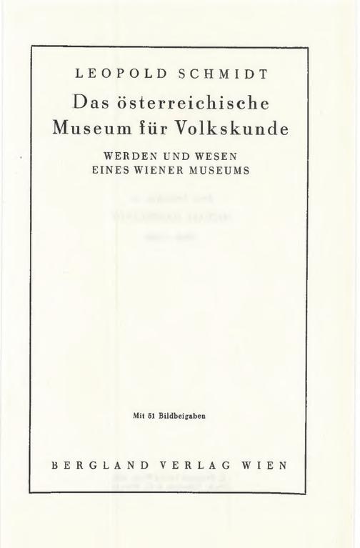 Das österreichische Museum für Volkskunde : Werden und Wesen eines Wiener Museums