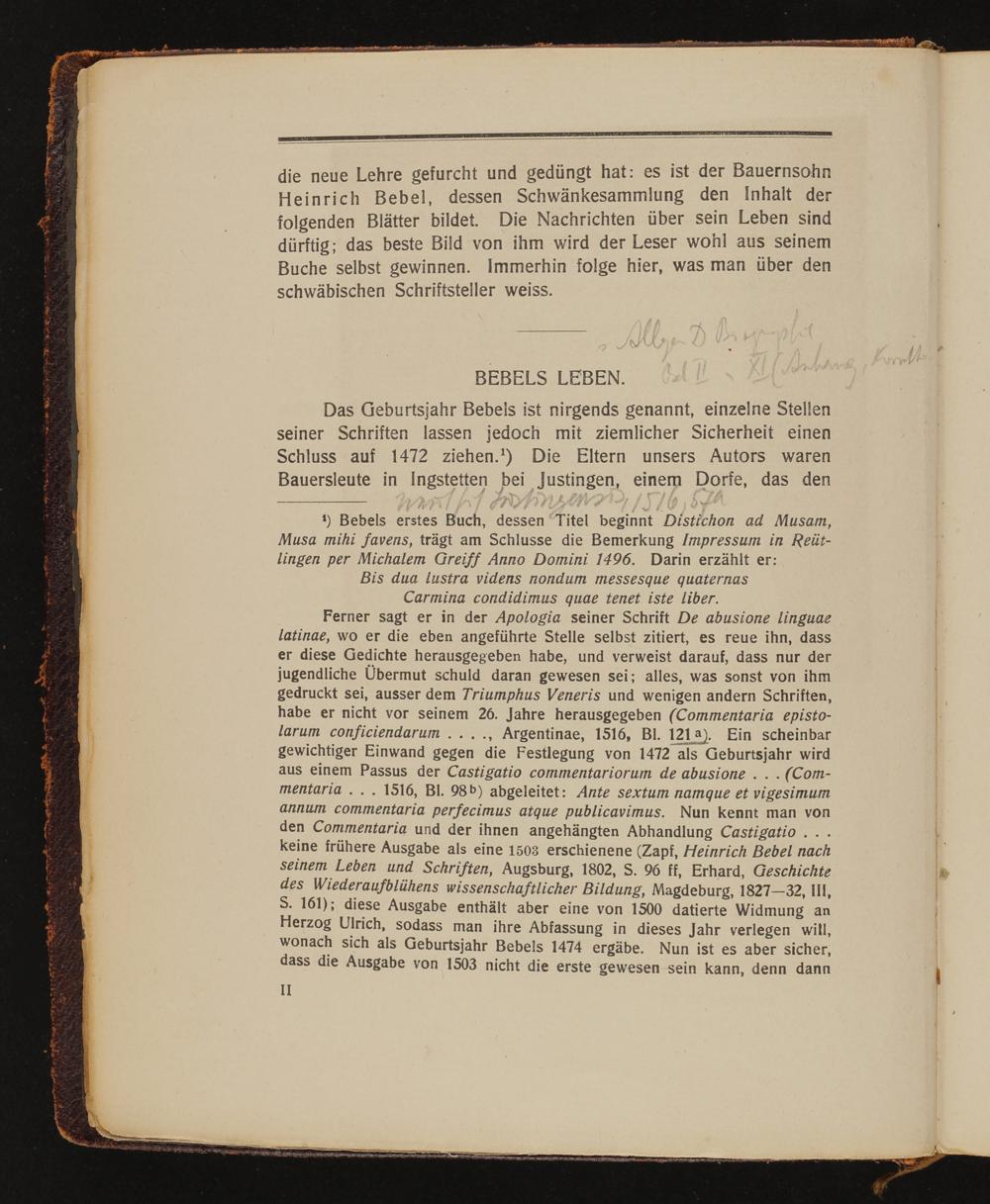 Heinrich Bebels Schwänke. zum l. Male in vollst. Übertr. hrsg. von Albert Wesselski