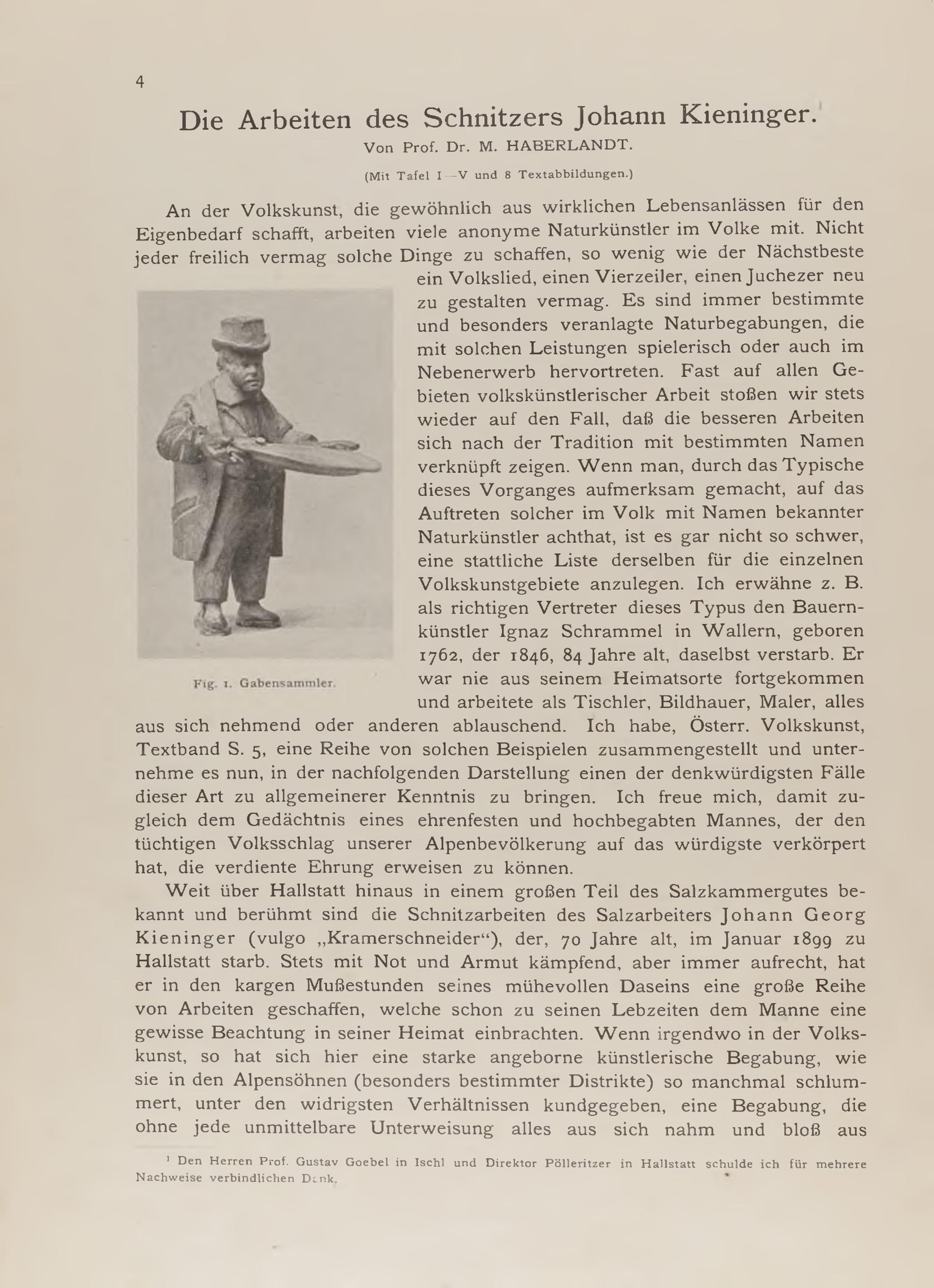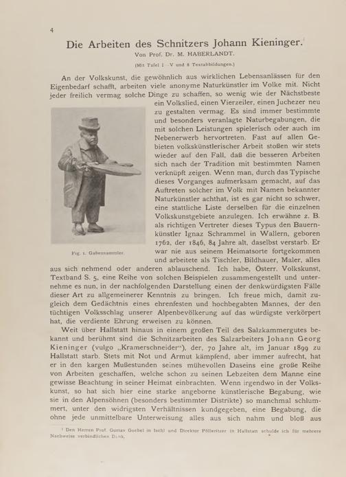 Michael Haberlandt: Die Arbeiten des Schnitzers Johann Kieninger (mit Tafel I-V und 8 Textabb.)