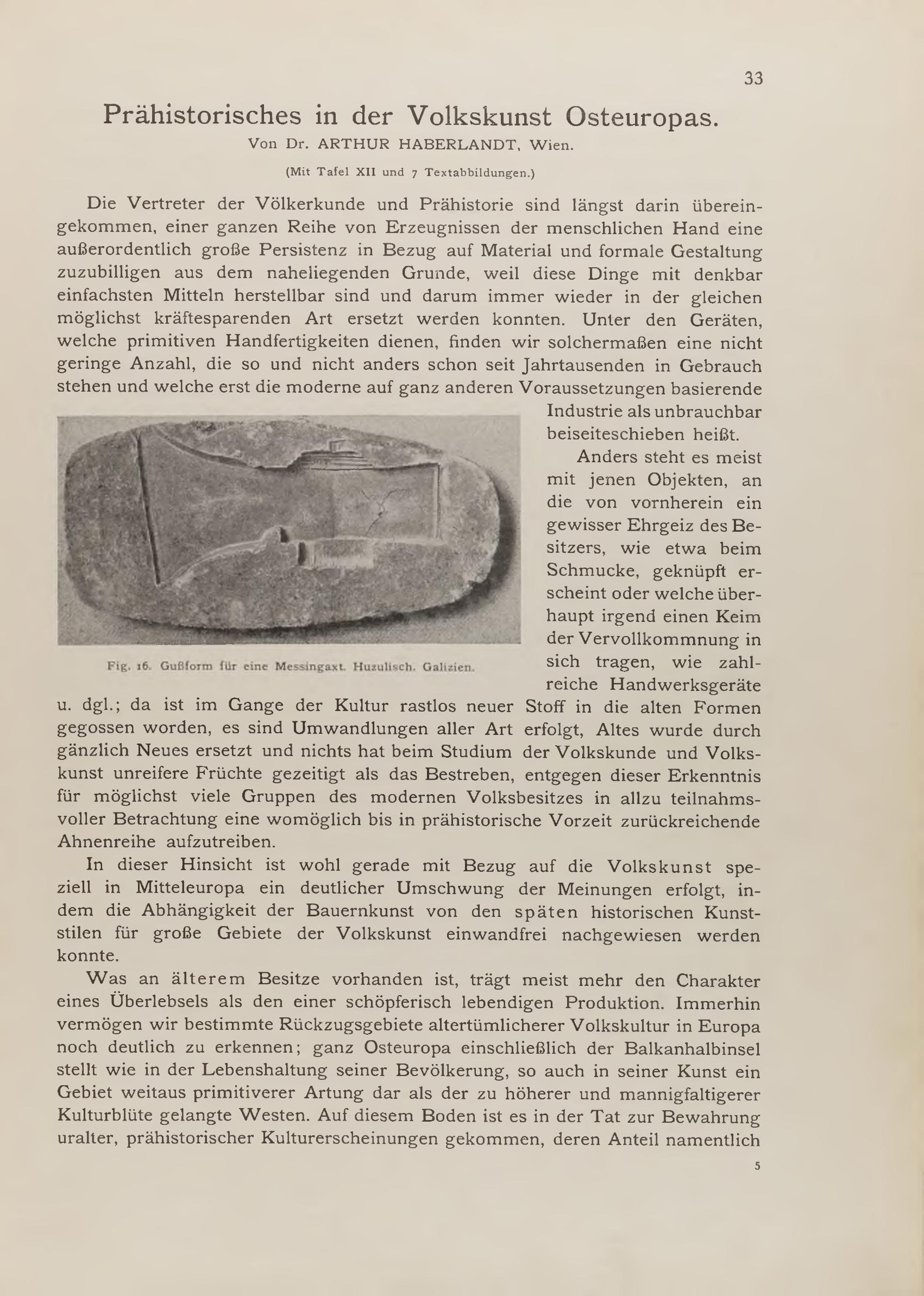 Arthur Haberlandt: Prähistorisches in der Volkskunst Osteuropas (mit Tafel XII und 7 Textabb.)