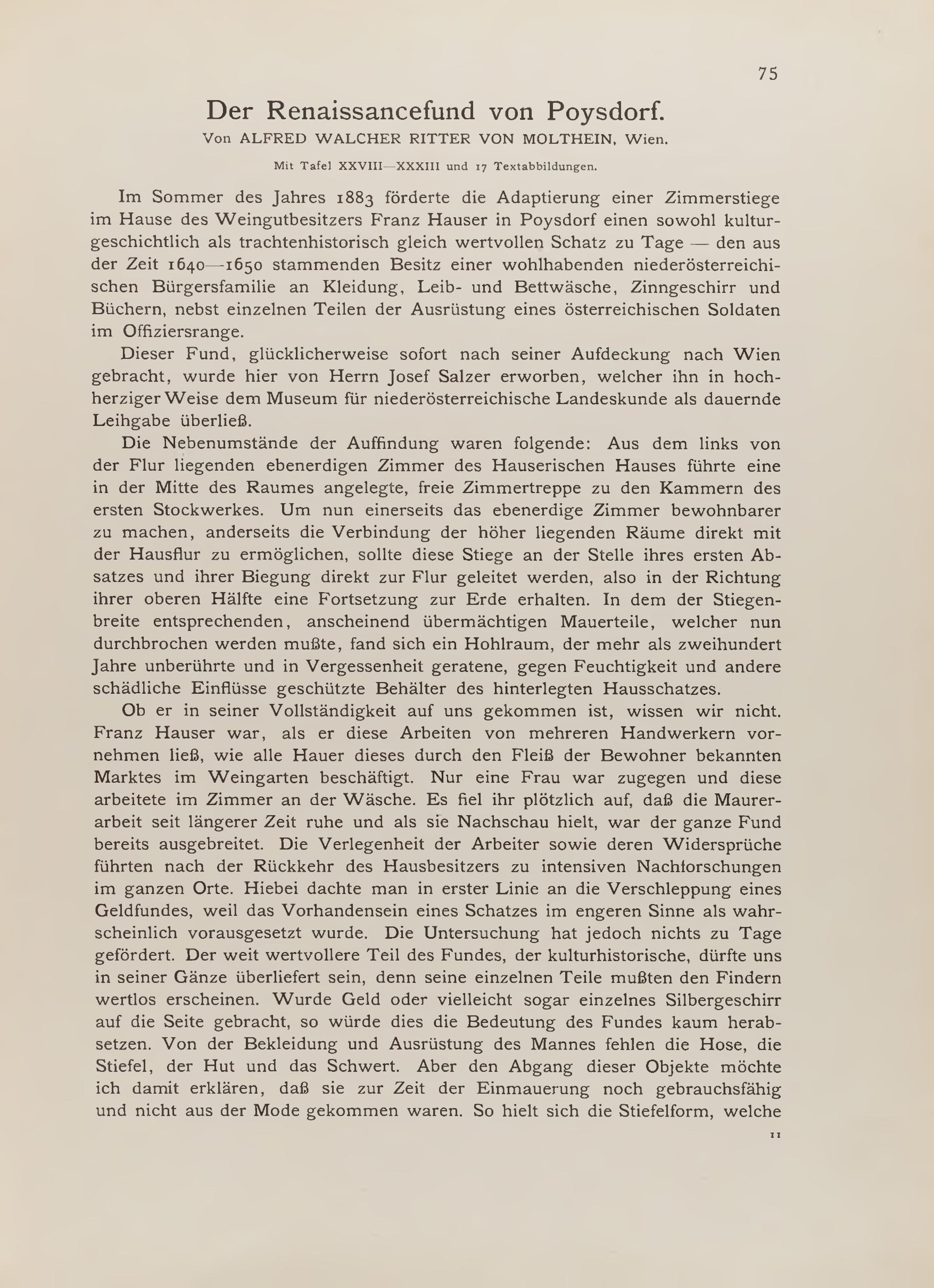 Alfred Walcher von Molthein: Der Renaissancefund von Poysdorf (mit Tafel XXVIII-XXXIII und 17 Textabb.)