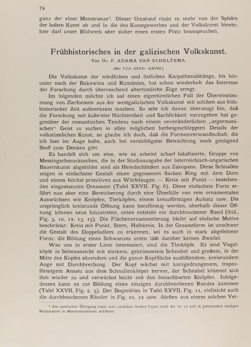 F. Adama van Scheltema: Frühhistorisches in der galizischen Volkskunst (mit Tafel XXVII-XXVIII)