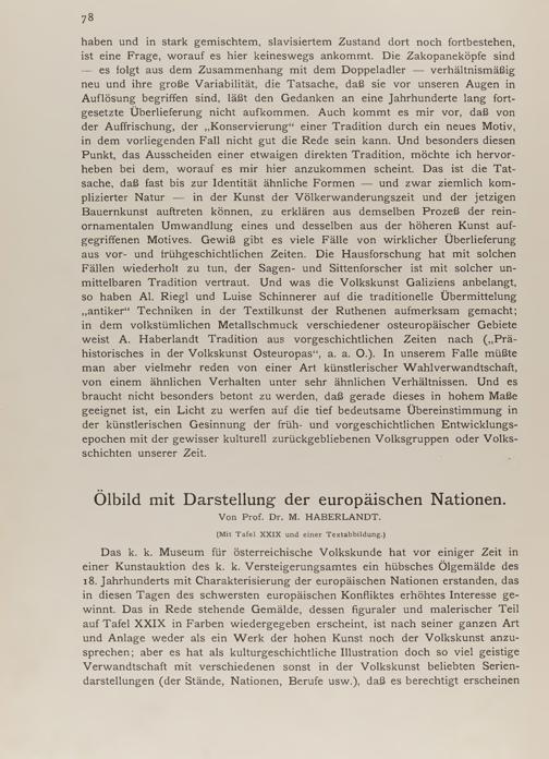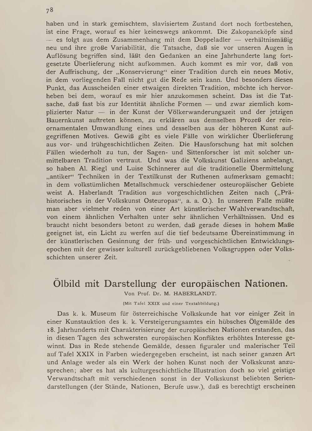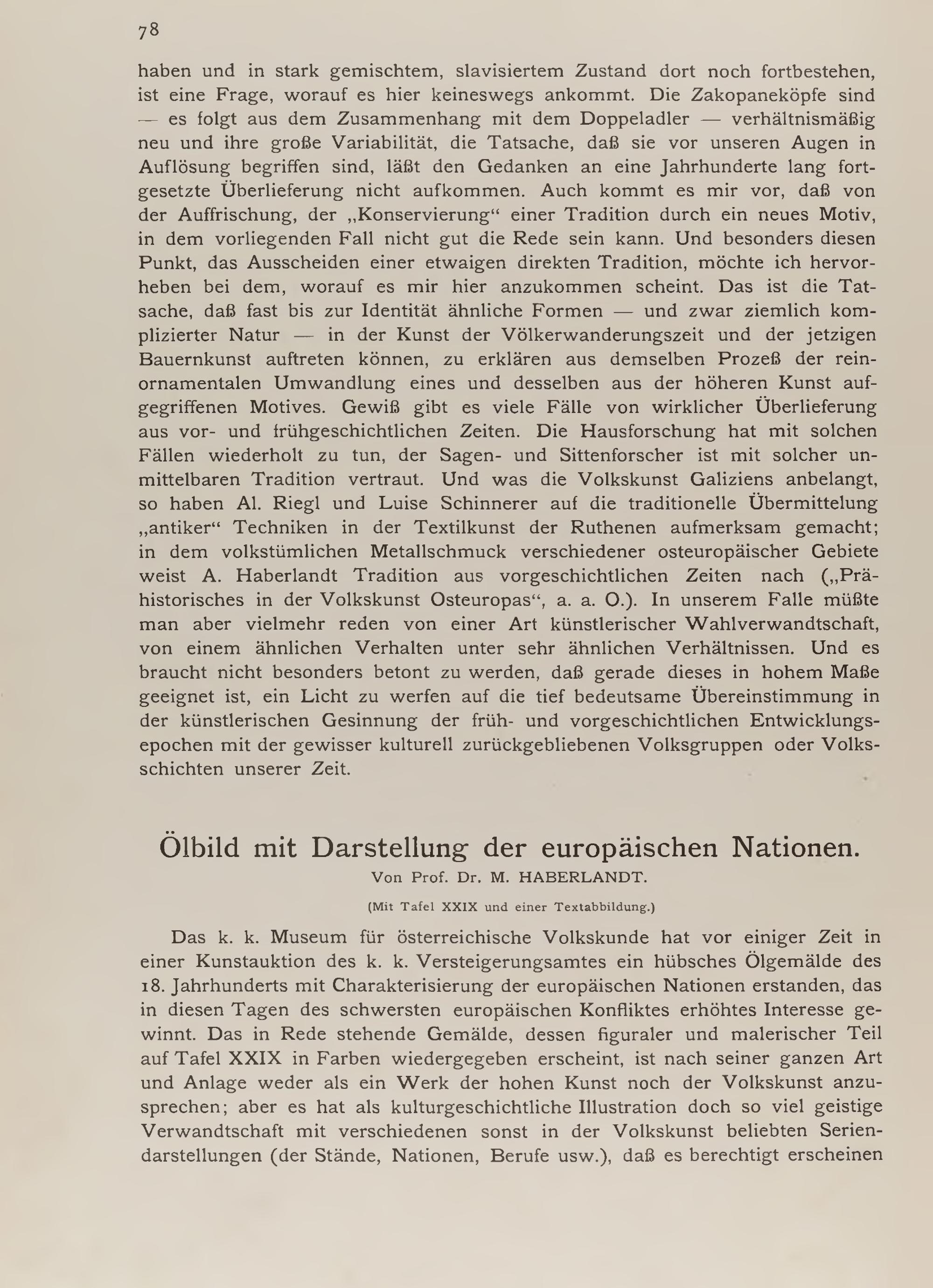 Michael Haberlandt: Ölbild mit Darstellung der europäischen Nationen (mit Tafel XXIX und einer Textabb.)