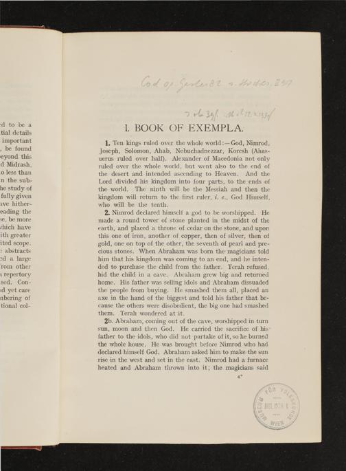 The exempla of the rabbis being a collection of exempla, apologues and tales culica from Hebrew manuscripts and rare hebrew books