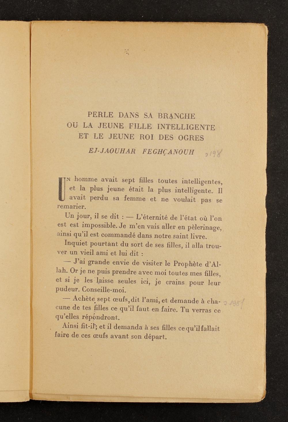 Perle dans sa branche ou la jeune fille intelligente et le jeune roi des ogres. – Ej-Jaouhar feghçanouh