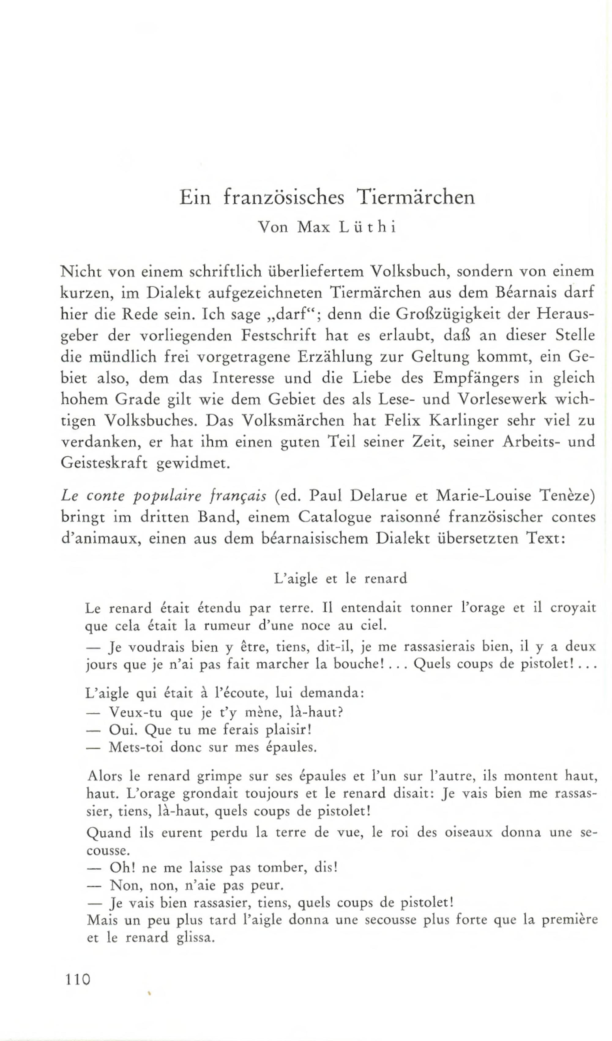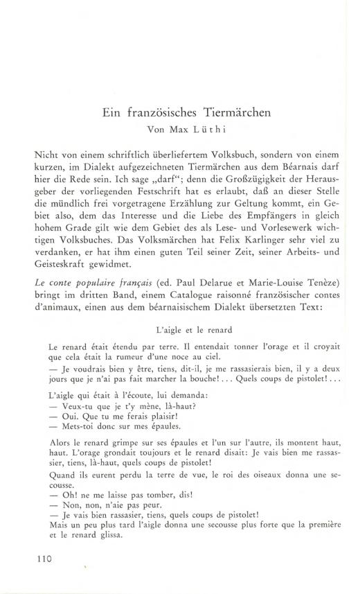 Max Lüthi: Ein französisches Tiermärchen
