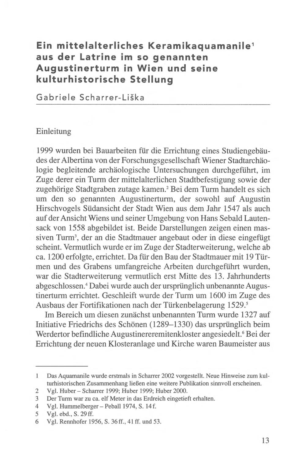 Gabriele Scharrer-Liška: Ein mittelalterliches Keramikaquamanile aus der Latrine im so genannten Augustinerturm in Wien und seine kulturhistorische Stellung