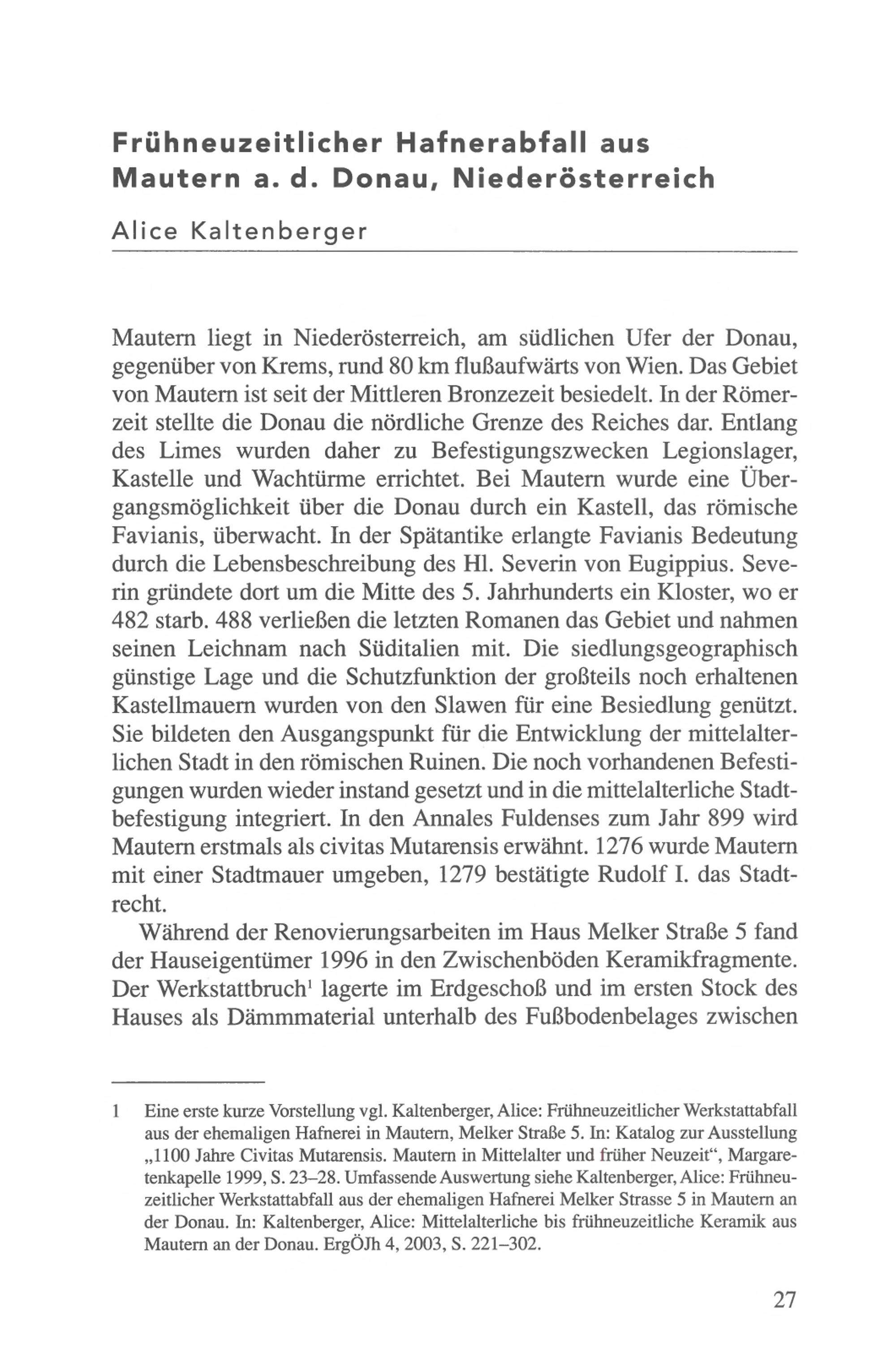 Alice Kaltenberger: Frühneuzeitlicher Hafnerabfall aus Mautern a. d. Donau, Niederösterreich