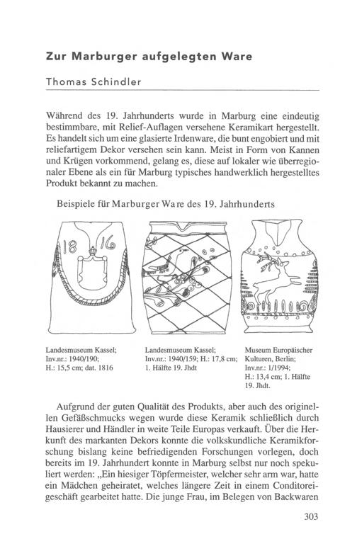 Thomas Schindler: Zur Marburger aufgelegten Ware