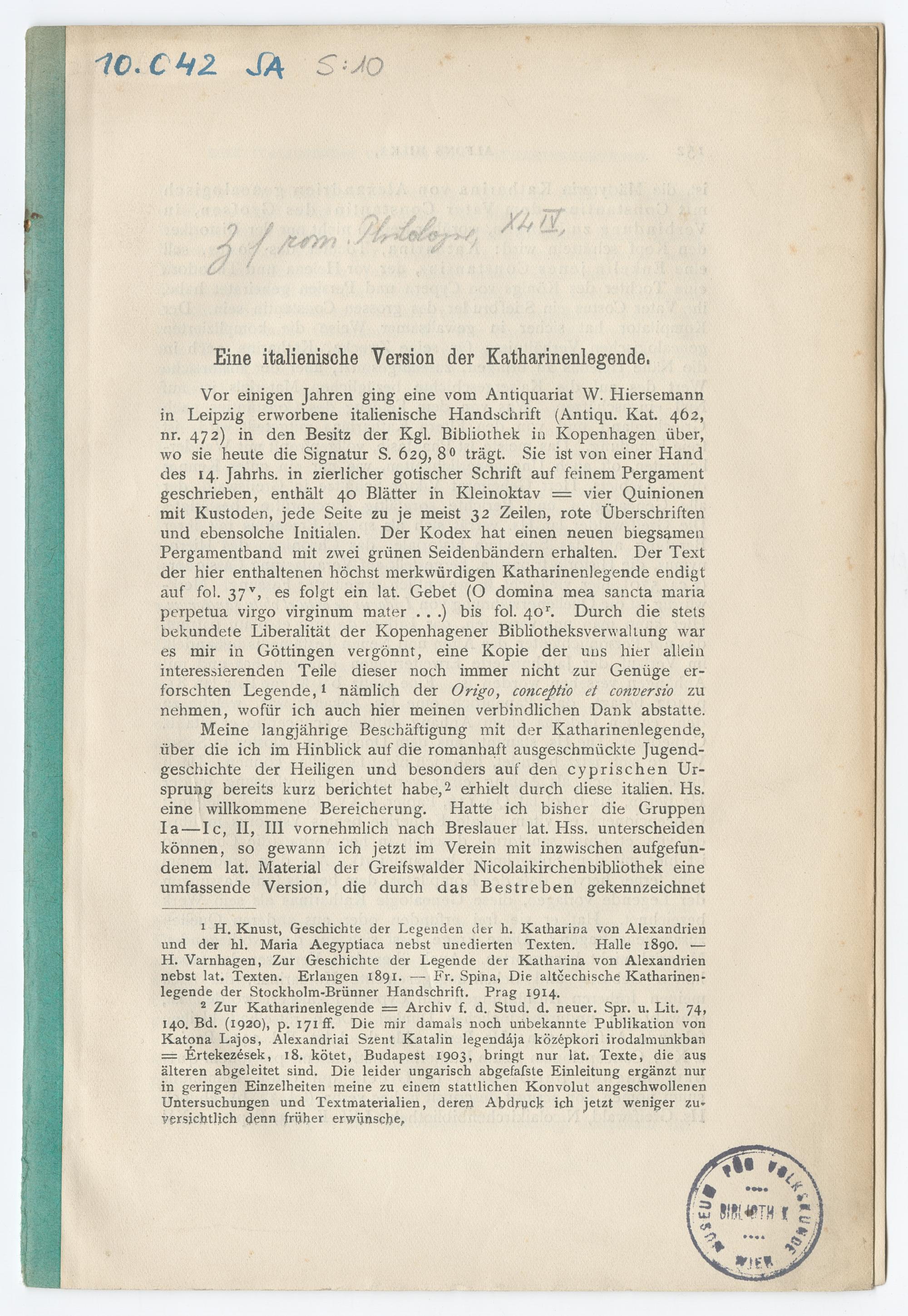 Eine italienische Version der Katharinenlegende