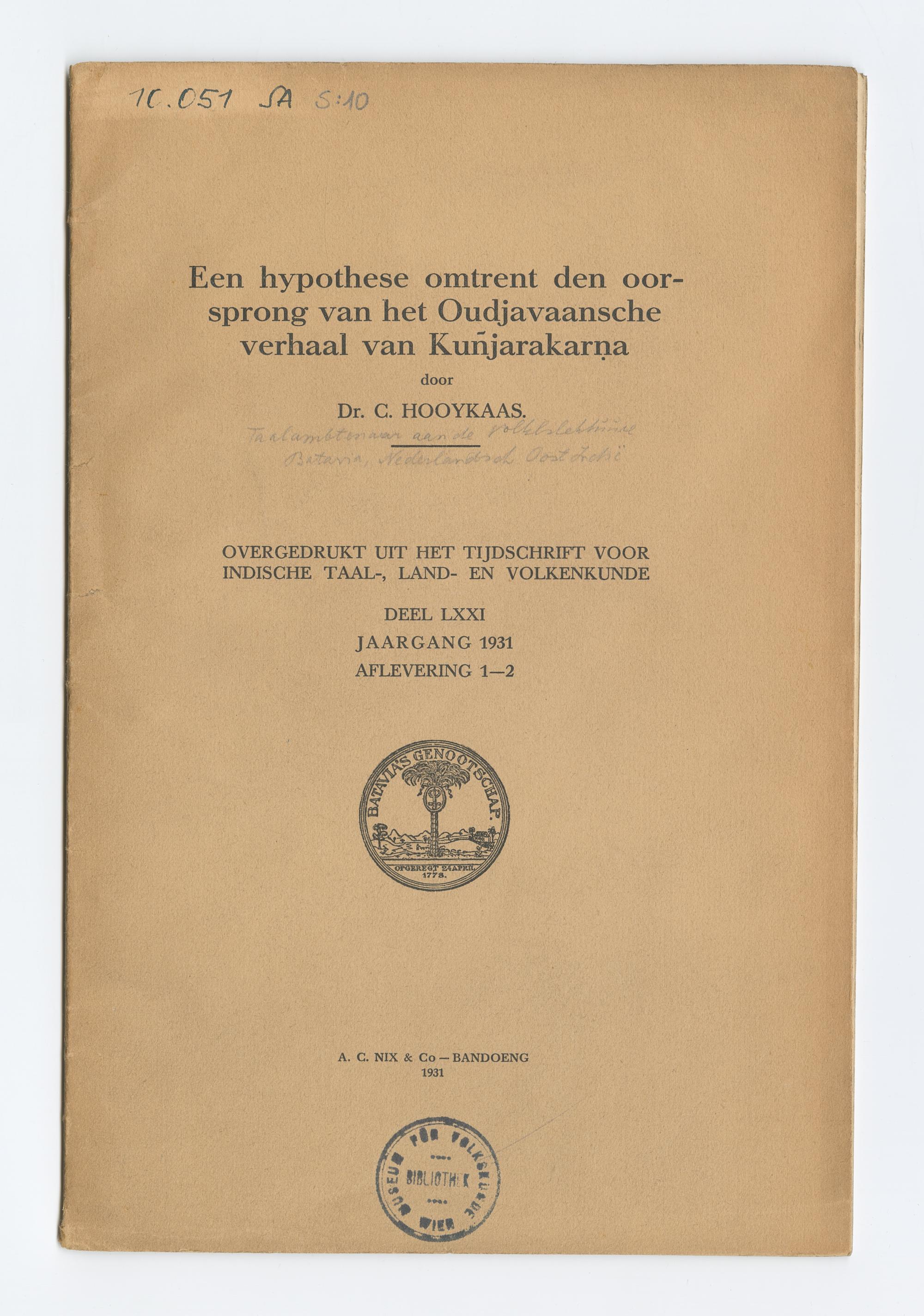 Een hypothese omtrent den oorsprong van het Oudjavaansche verhaal van Kuñjarakarṇa
