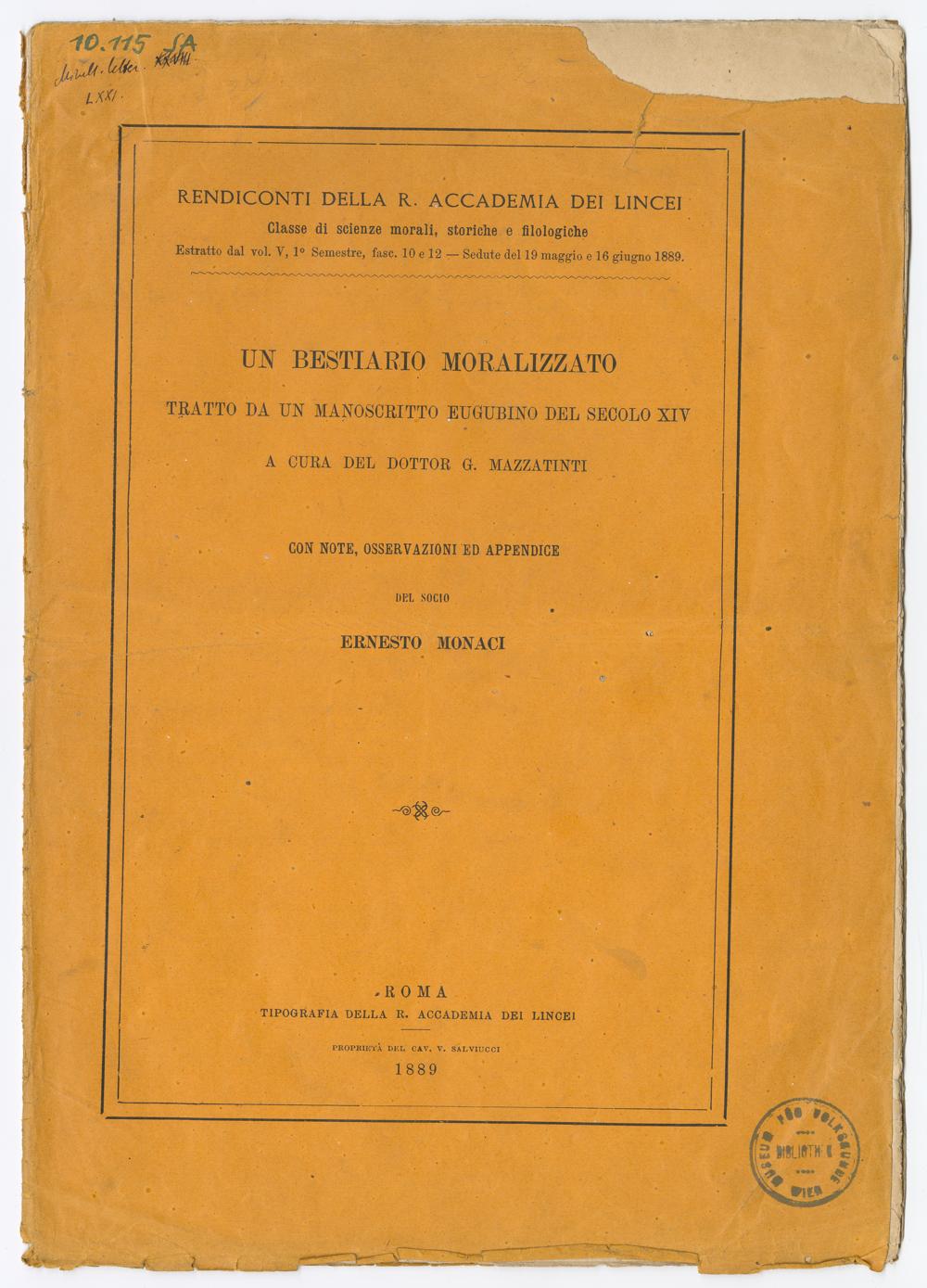 Un bestiario moralizzato : tratto da un manoscritto eugubino del secolo XIV