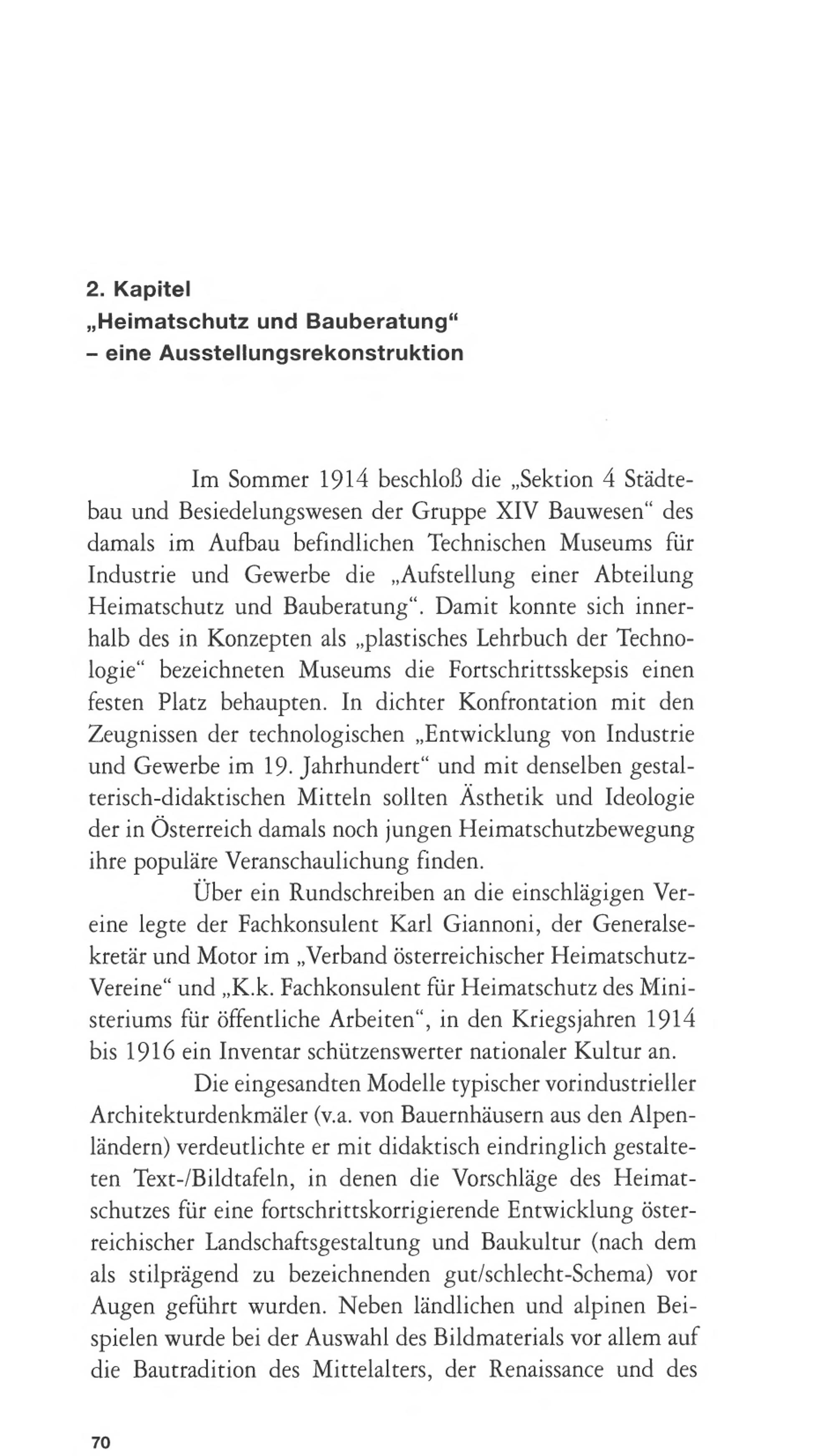 "Heimatschutz und Bauberatung". Museales Zeugnis einer Österreich-Konstruktion im Technischen Museum Wien (1914-1916)