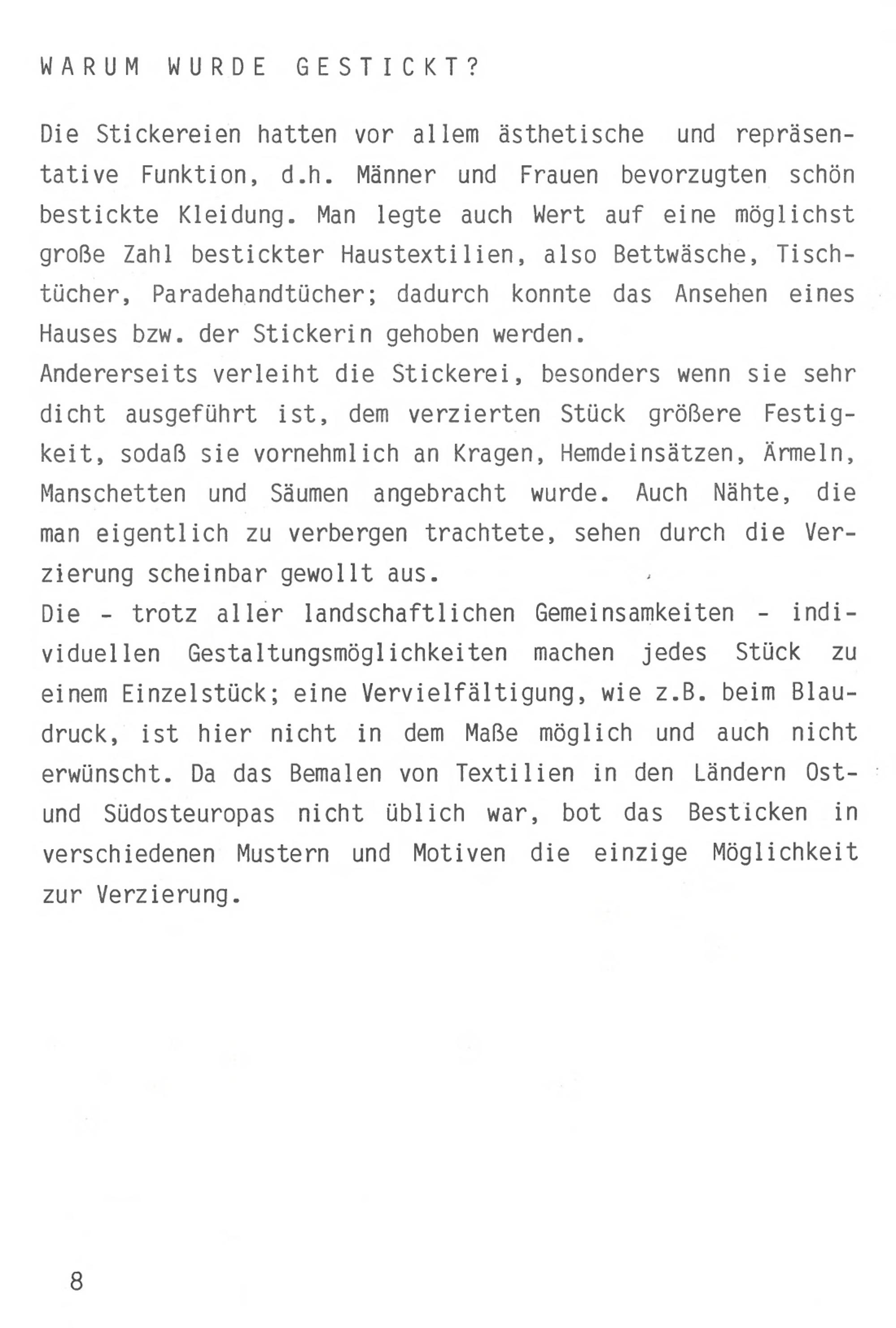 Warum wurde gestickt?