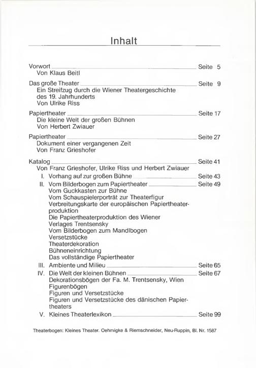 1 (1985) Papiertheater : eine Sonderausstellung aus Wiener Sammlungen. [1] / Katalog