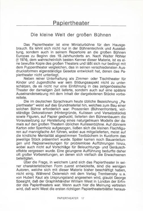 1 (1985) Papiertheater : eine Sonderausstellung aus Wiener Sammlungen. [1] / Katalog