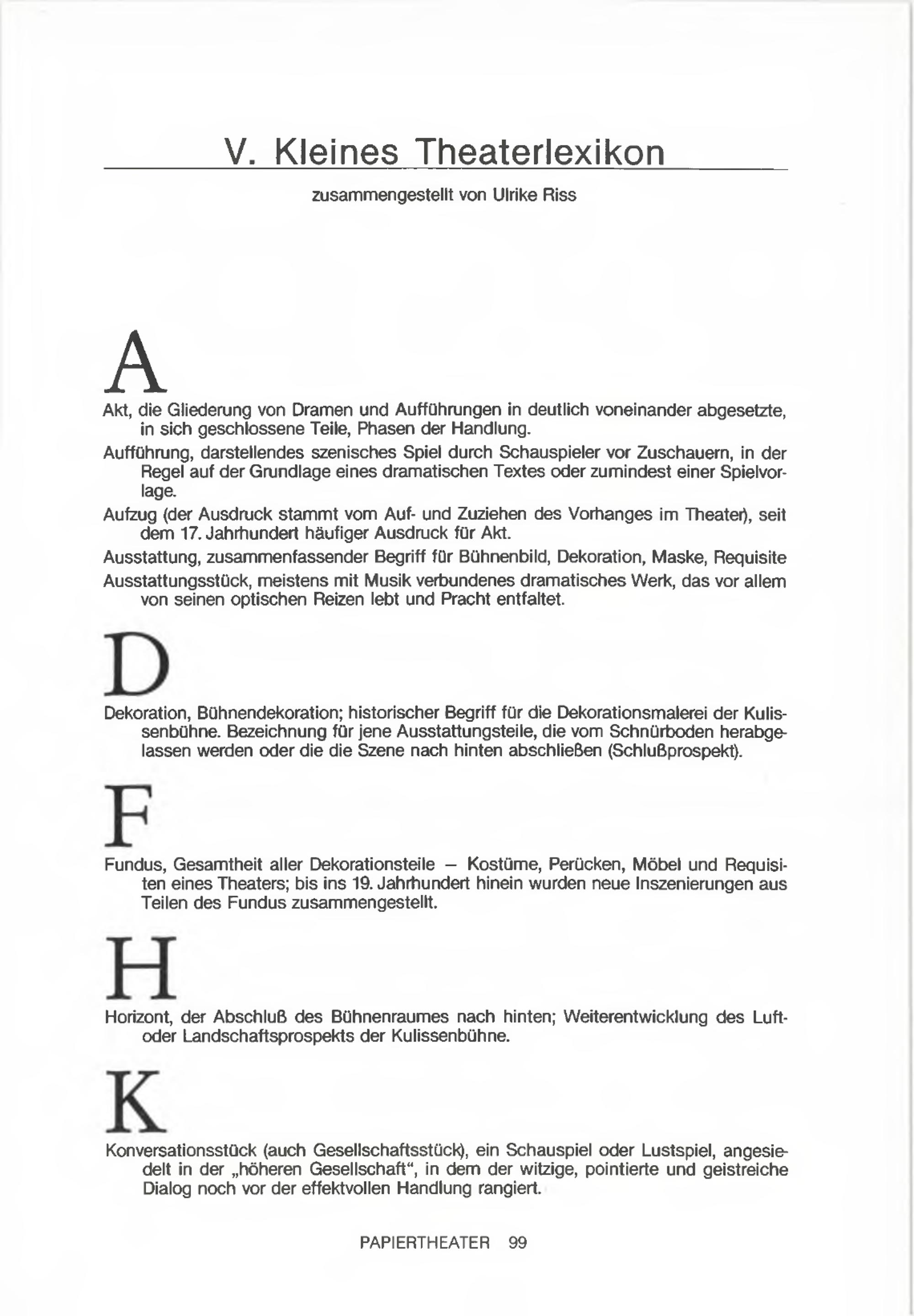 V. Kleines Theaterlexikon