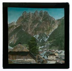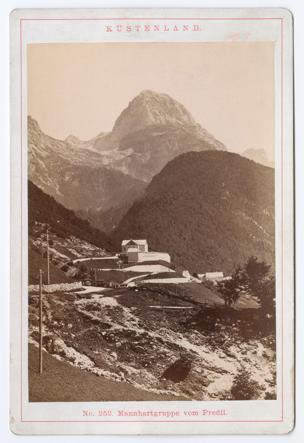 KÜSTENLAND. No. 252. Mannhartgruppe vom Predil. (Originaltitel)Cave del Predil (Aufnahmeort)Diapositiv: Raibl mit Fünfspitz, Königreich Italien