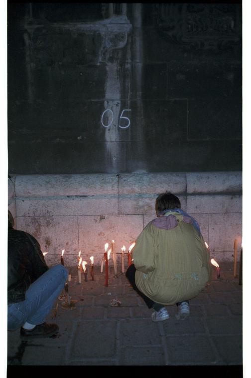 neg/15177/025: Negativ: Lichtermeer 1993, Demonstrierende beim Widerstandszeichen 05 am Stephandsdom, WienVolkskundemuseum Wien