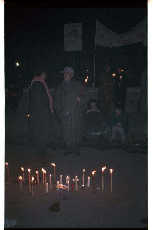 neg/15177/009: Negativ: Lichtermeer 1993, Demonstrierende zwischen Kerzen und Transparenten, Heldenplatz, Wien (Ausschnitt)Volkskundemuseum Wien