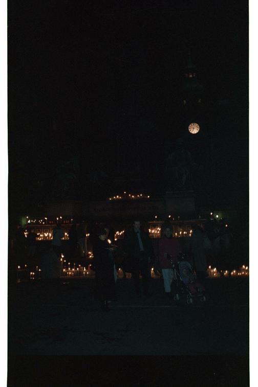neg/15177/013: Negativ: Lichtermeer 1993, brennende Kerzen auf dem Kaiser-Franz-Denkmal, In der Burg im Areal der Hofburg, Wien (Ausschnitt)Volkskundemuseum Wien
