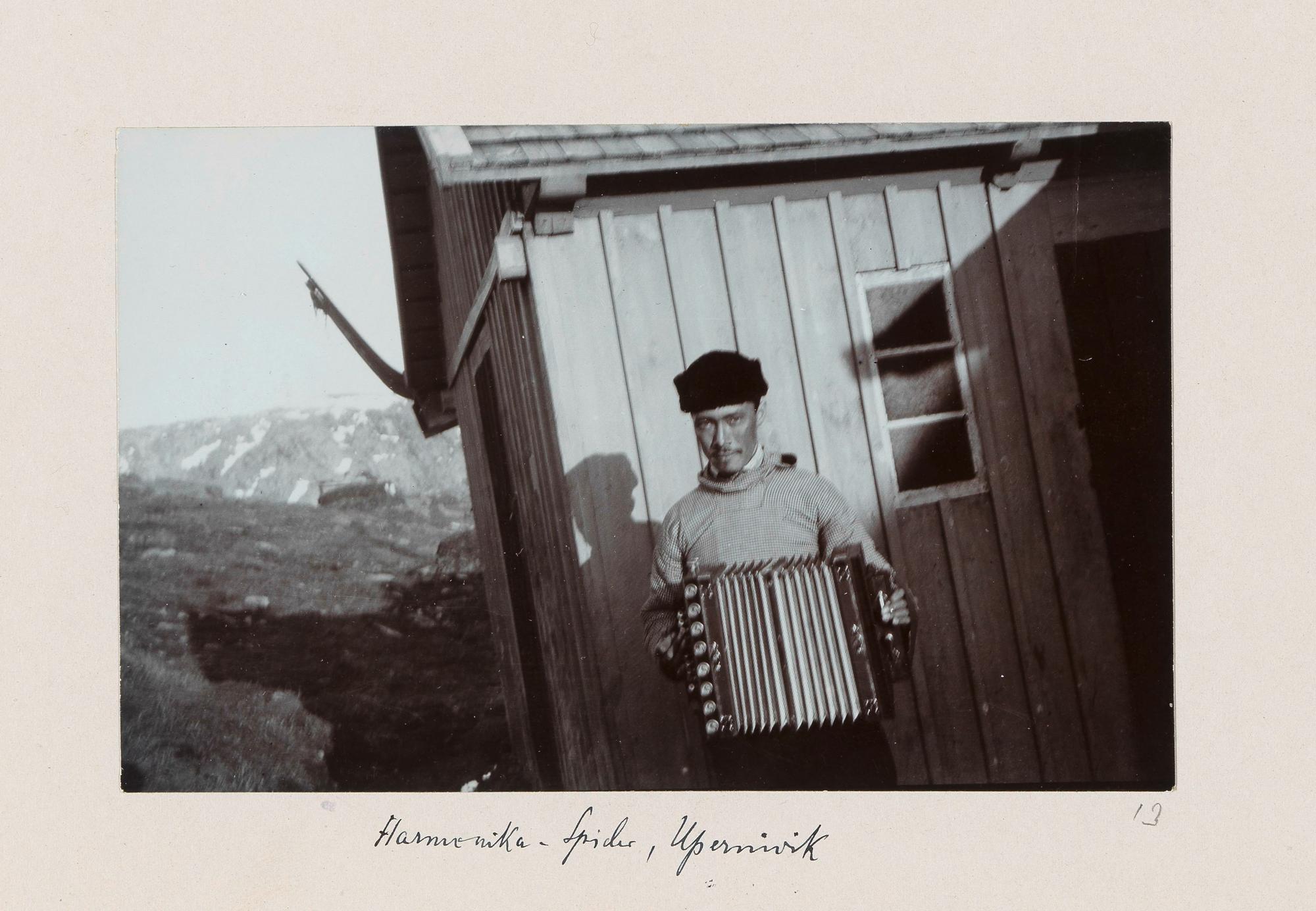 Positiv: Johann Mørk mit Harmonika, UpernavikVolkskundemuseum Wien / Foto: Birgit&Peter Kainz, faksimile digital