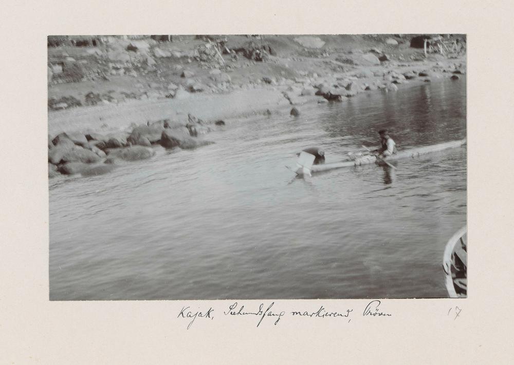 Positiv: Kajak, Robbenfang markierend, KangersuatsiaqVolkskundemuseum Wien / Foto: Birgit&Peter Kainz, faksimile digital