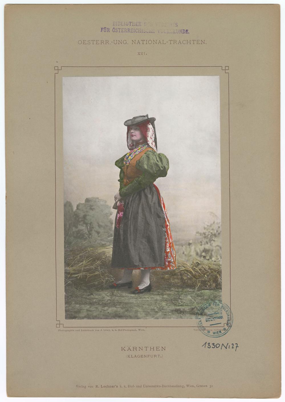 pos/1325/016: Lichtdruck: Tafel 16: Frau in Tracht, Klagenfurt, Kärnten, VorderseiteVolkskundemuseum Wien
