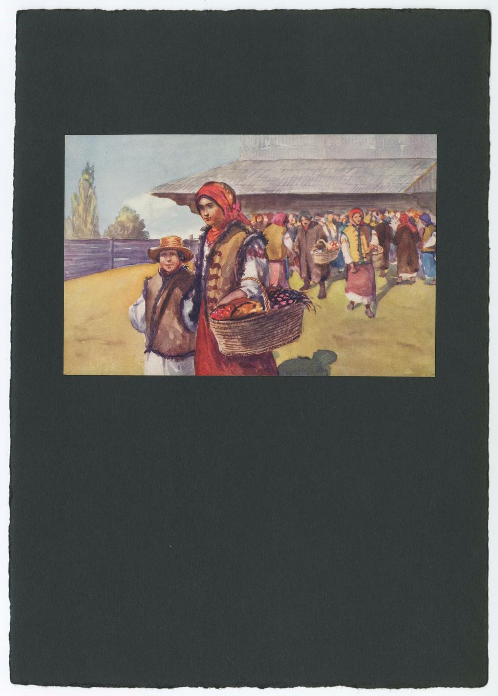 Ansichtskarte: Marktszene, Frau und Kind vor einer Menschenmenge, Galizien (heute: Ukraine), VorderseiteVolkskundemuseum Wien