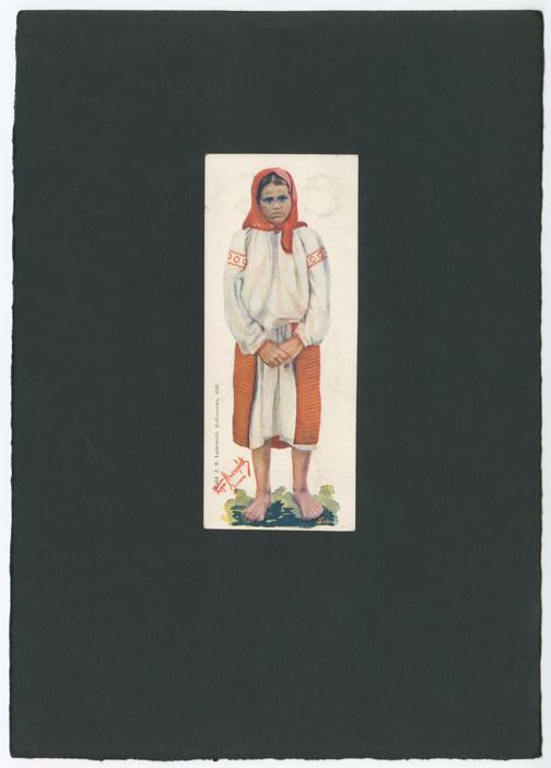 Ansichtskarte: Zeichnung: Mädchen in Tracht, Jaremeze, Galizien (heute: Ukraine)Volkskundemuseum Wien