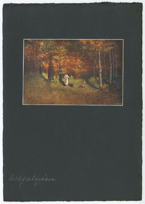Ansichtskarte: Gemälde: Frau im Wald, Galizien (heute: Ukraine), VorderseiteVolkskundemuseum Wien