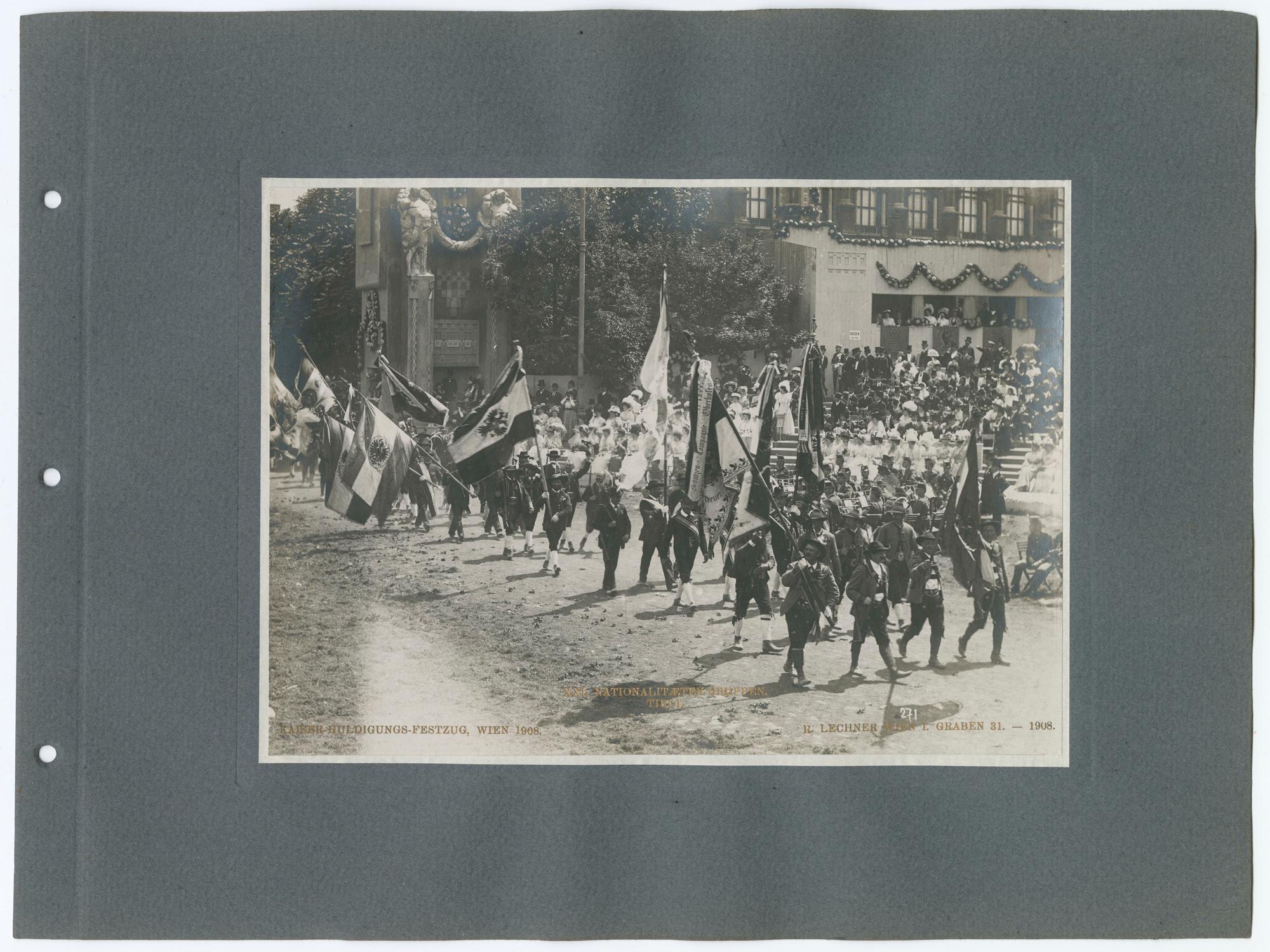 pos/1664/031: Positiv: Nationalitätengruppe "Tirol" beim Kaiser-Huldigungs-Festzug 1908, WienVolkskundemuseum Wien