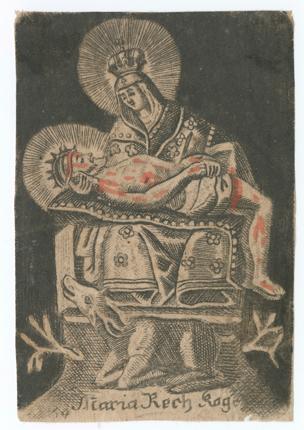 INTEGRITAS PRODITA (Originaltitel)Antwerpen (Herstellungsort)Andachtsbild mit gestanztem Spitzenrand: Mariazell (Steiermark)